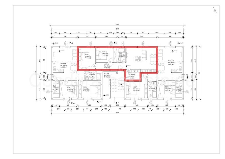 Ukupna neto površina apartmana iznosi 76,70 m2, a na priloženom tlocrtu označen je kao S2.