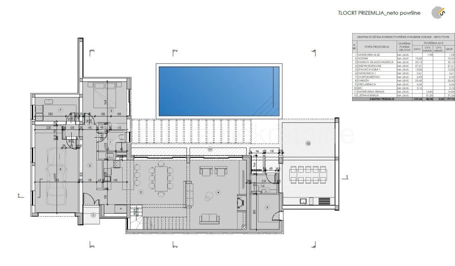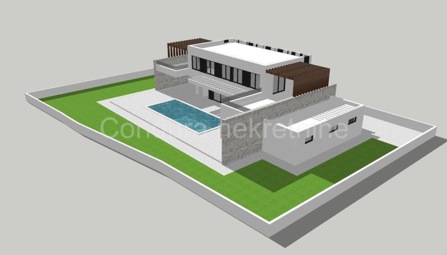Posjeduje pravomoćnu građevinsku dozvolu te projektnu dokumentaciju za izgradnju kuće s bazenom.