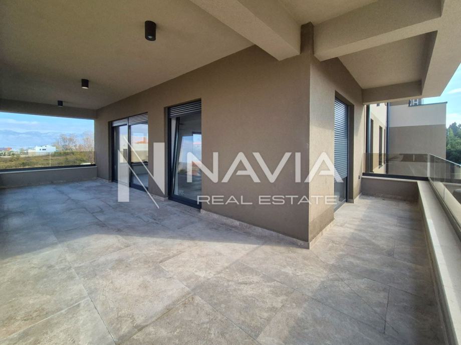 Ovaj stan je spoj suvremenog dizajna, iznimne prostranosti, velikih staklenih površina, vrhunske gradnje i izuzetne terase — savršen izbor za one koji traže kvalitetu i udobnost na odličnoj lokaciji blizu mora.