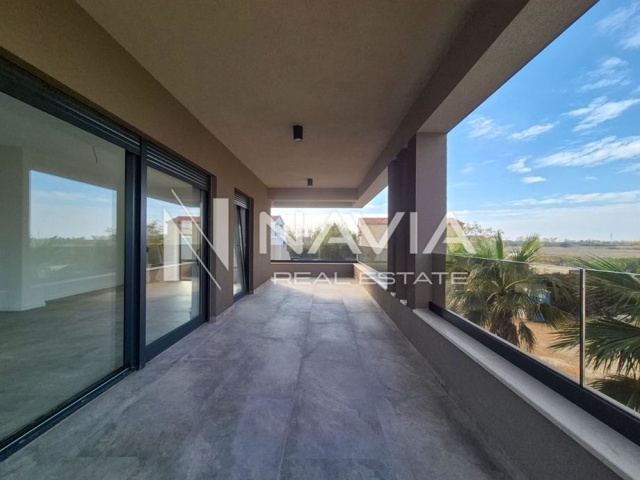 Prodaje se iznimno prostran i moderno uređen stan na prvom katu vrhunske novogradnje u Sabunikama, Privlaka. Sa svojih 105 m², stan nudi izvanredan osjećaj širine i udobnosti, dodatno naglašen velikim panoramskim staklenim površinama koje propuštaju obilje prirodnog svjetla i otvaraju prostor prema okolini. Upravo ti veliki prozori stvaraju dojam luksuza, povezuju interijer s eksterijerom i čine dnevne prostore izuzetno svijetlima i vizualno još većima.