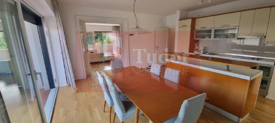 Iznajmljuje se stan u sigurnoj kući (zelena naljepnica) na top lokaciji, površine 150 m². Stan ima potpuno nove instalacije struje, vode, grijanja, pločica i parketa te izvrsnu toplinsku i zvučnu izolaciju. Kuća ima novu fasadu i stolariju drvo–aluminij, a prozori su opremljeni električnim roletama.