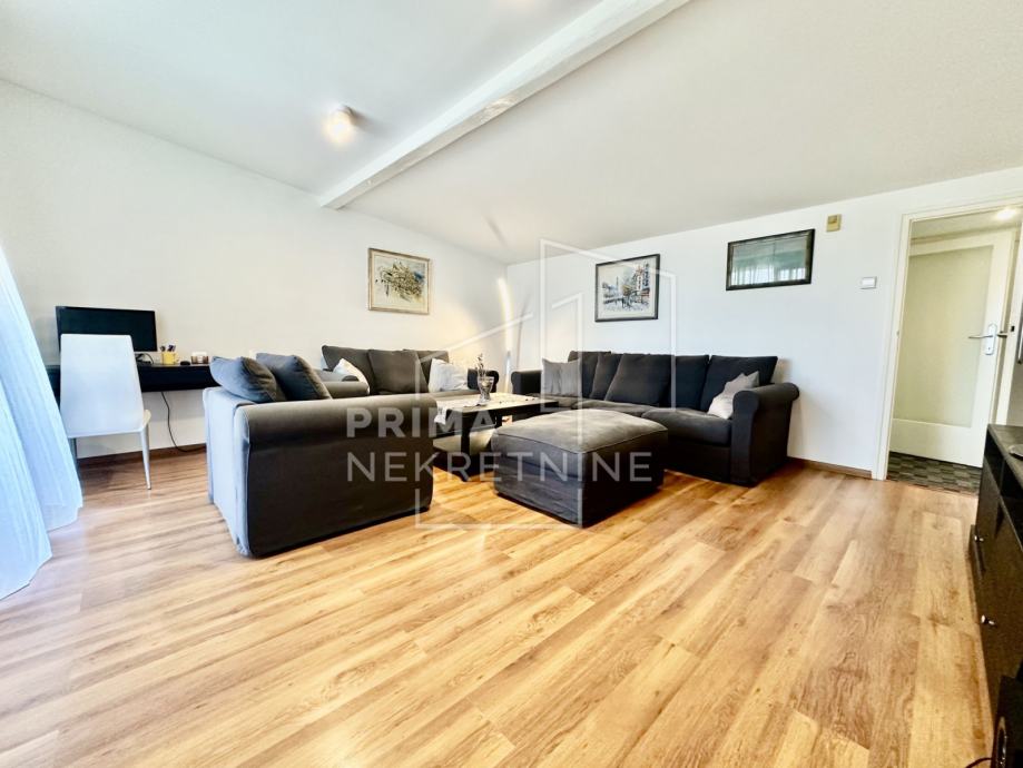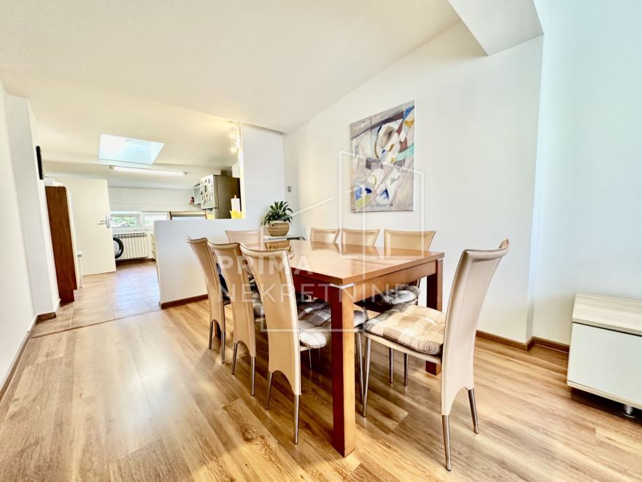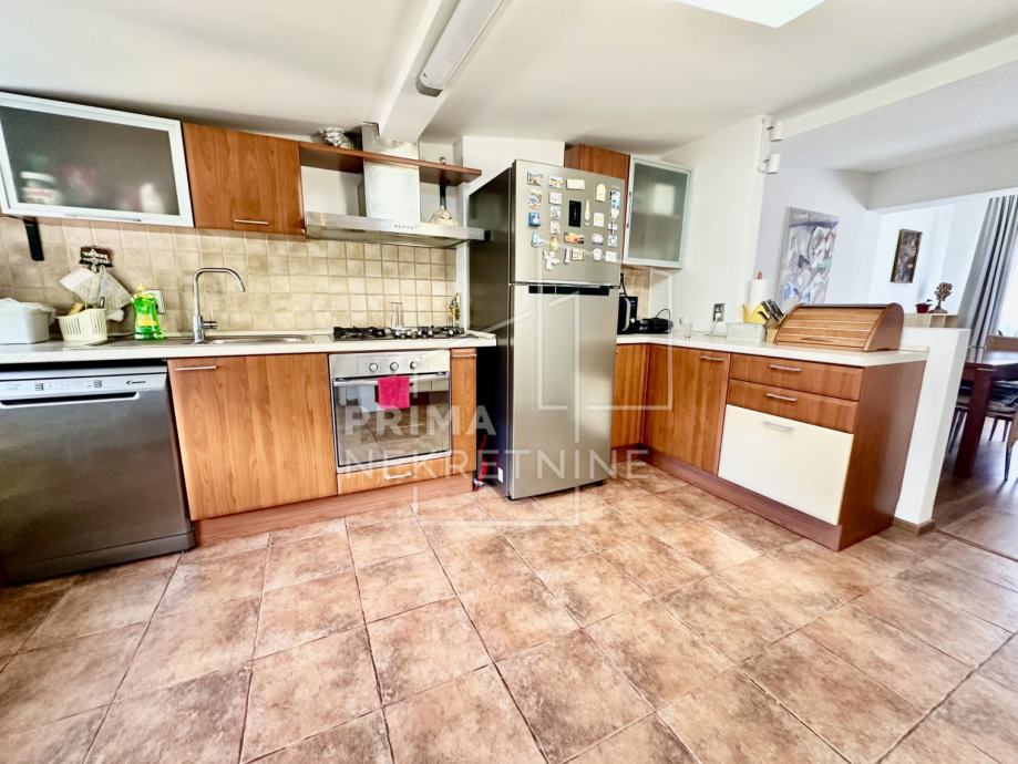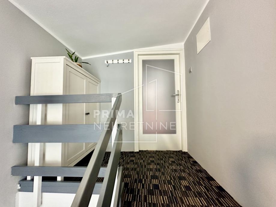 Potkrovlje kuće sastoji se od dnevnog boravaka s kuhinjom i blagovaonicom, WC-a i prostrane terase.