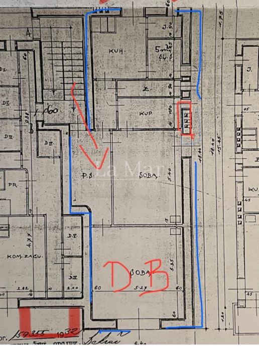 Stan se nalazi na 1.katu, sa balkonom i 2 zatvorene loggie, te se postojeći tlocrt, koji je u prilogu oglasa, može prilagoditi prema vlastitim potrebama i željama.