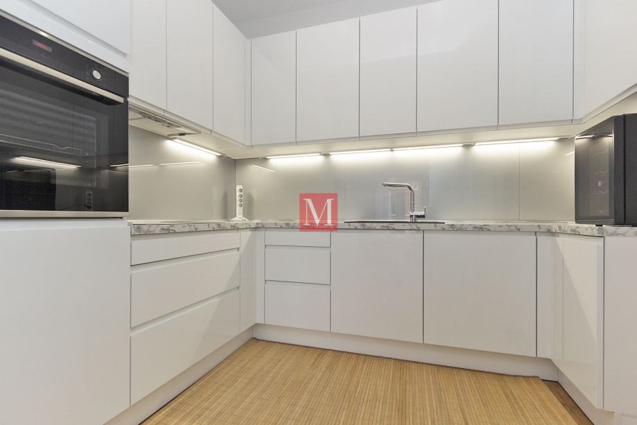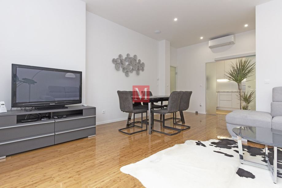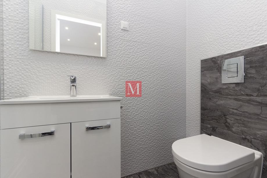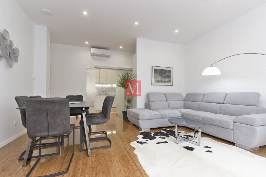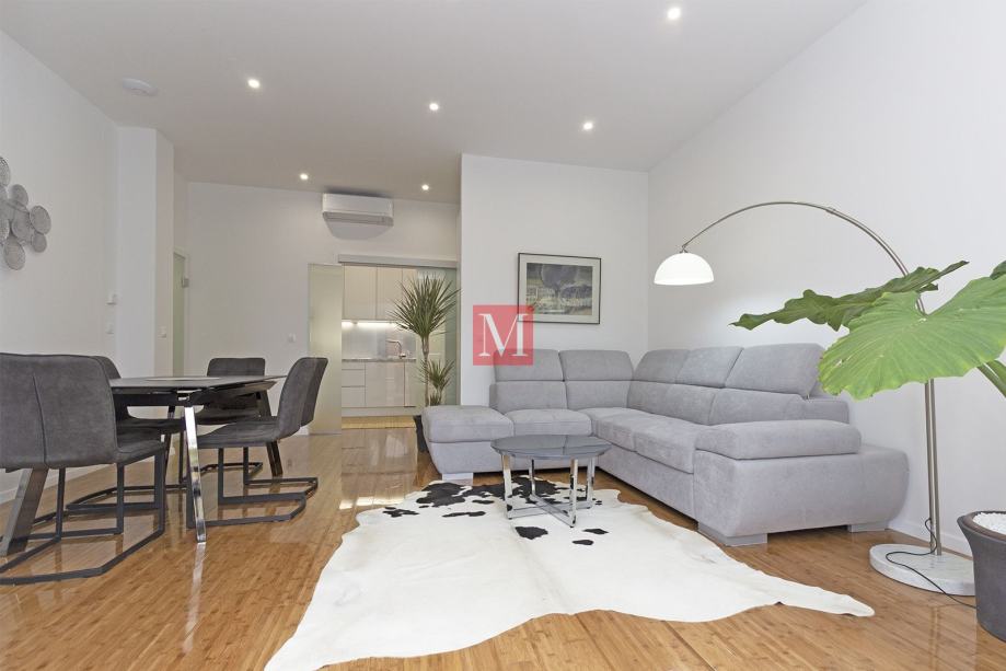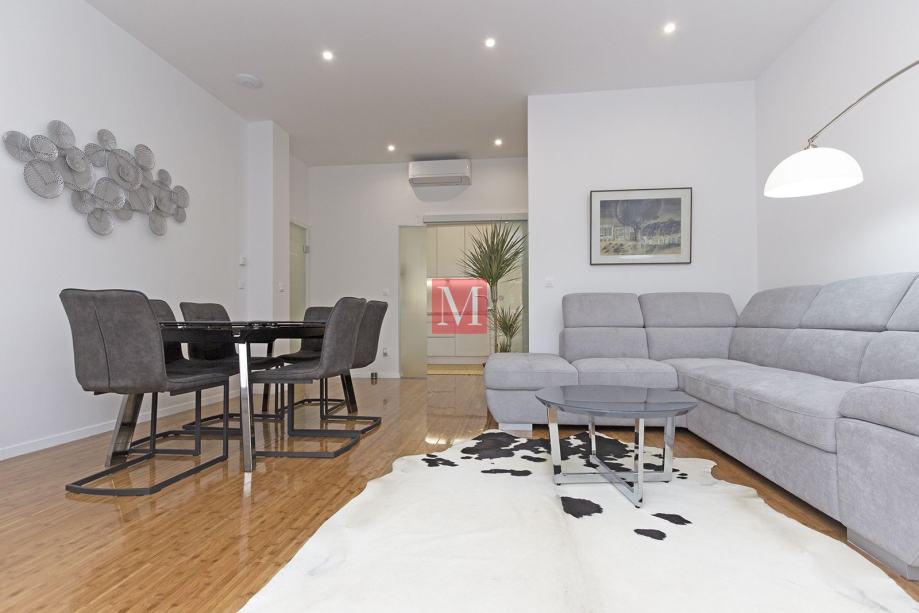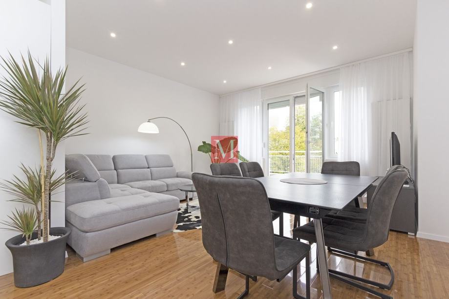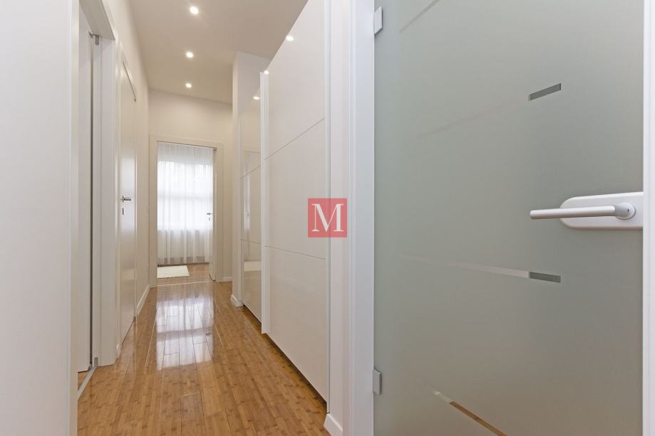 Sastoji se od ulaznog hodnika, kuhinje, dnevnog boravka s blagovaonskim dijelom i izlazom na veliku terasu sa koje se pruža predivan pogled, 3 spavaće sobe, 2 kupaonice (kada i tuš), ostave s praonicom rublja, gostinjskog wc-a i loggie.