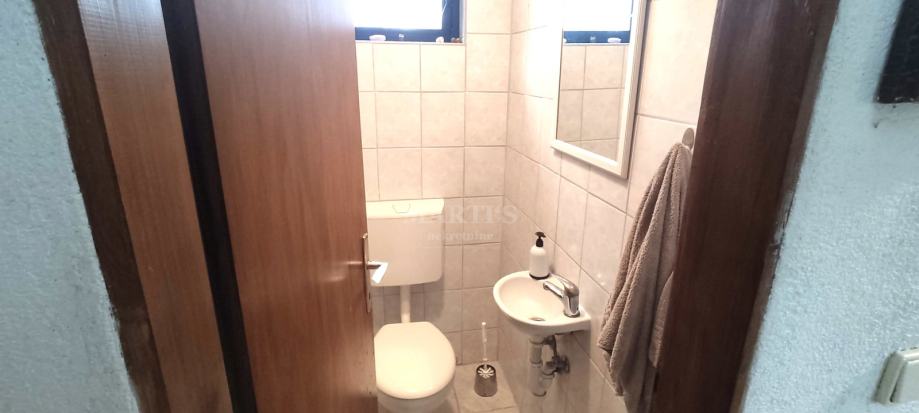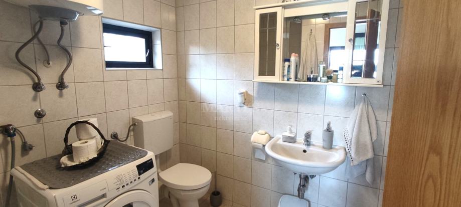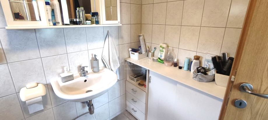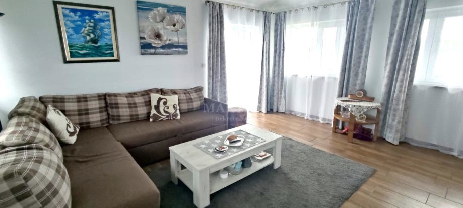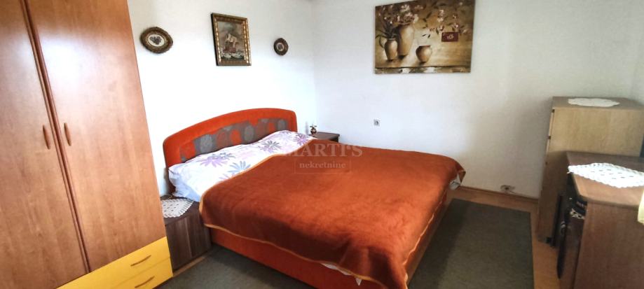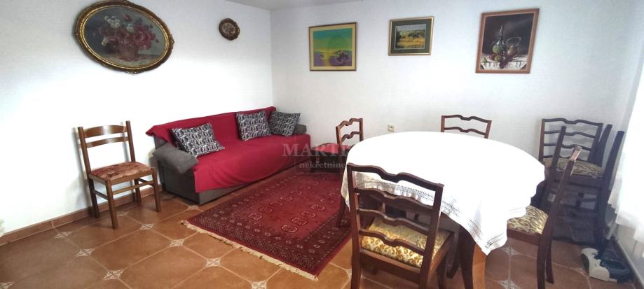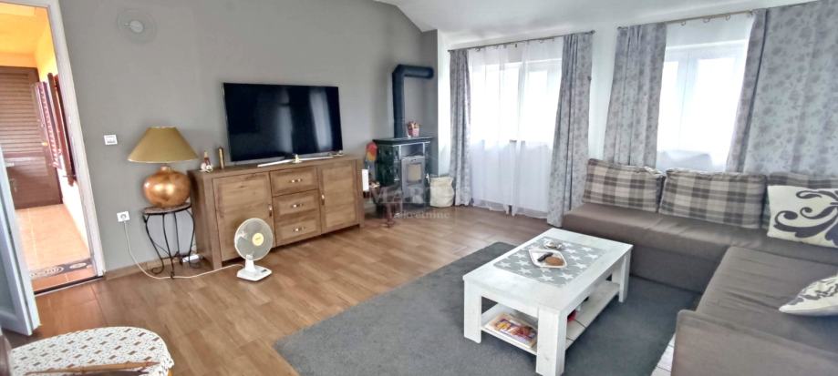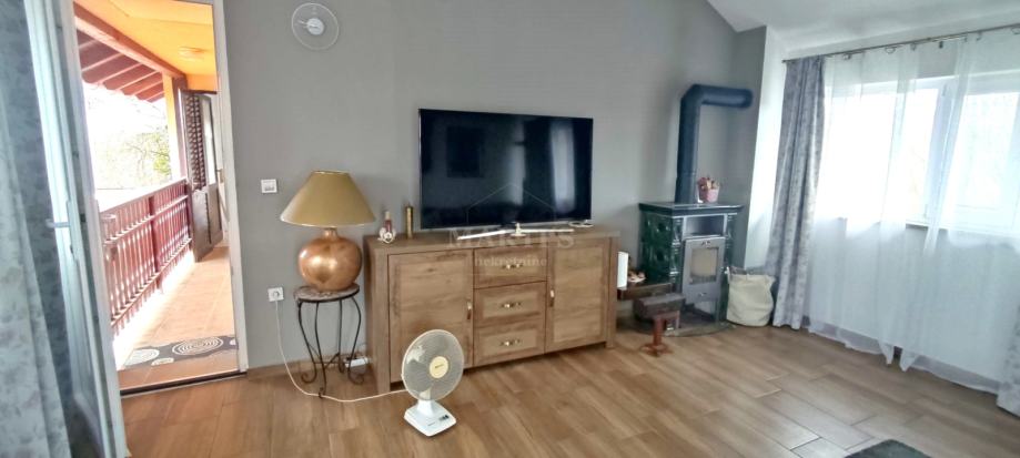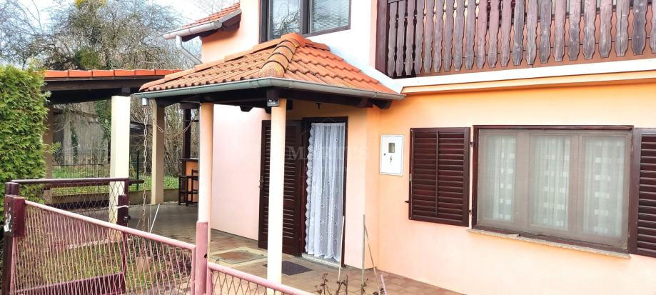 Prodajemo lijepu i funkcionalnu 3-sobnu kuću s 2 etaže, nadstrešnicom i dvorištem, garažom, spremištem, pušnicom, drvarnicom i hidroforom. Kuća ima 83 m2, a nadstrešnica i dvorište 134 m2. Nadstrešnica natkriva prelijepu vanjsku terasu s ljuljačkom, ljetnom kuhinjom i zidanim roštiljem. U okruženju su seoske kućice, vikendice i šumarci. S prednje strane kuće je dvorište, a čini ga popločeni dio, travnati i cvjetnjak.