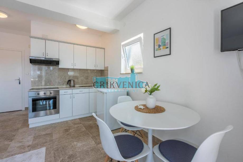 U ponudu smo dobili odličnu nekretninu, garsonijeru svega 200m od mora i uređene plaže sa svim sadržajima (kafići, restoran, pekara, dječje igralište...).