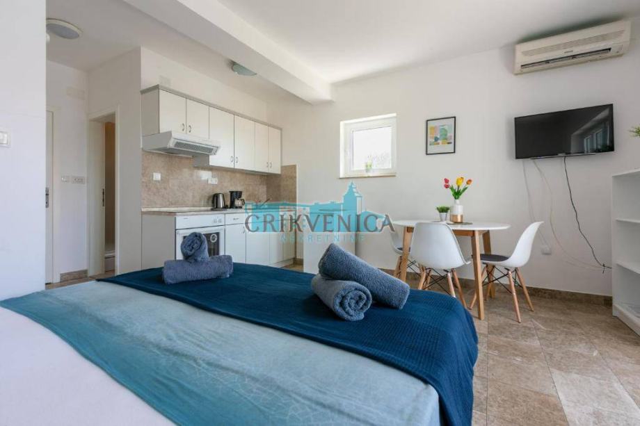 U ponudu smo dobili odličnu nekretninu, garsonijeru svega 200m od mora i uređene plaže sa svim sadržajima (kafići, restoran, pekara, dječje igralište...).