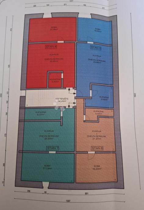 Etažiranje je završeno i u tijeku je upis u zemljišne knjige, zgrada ima rješenje o legalizaciji.