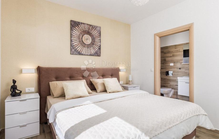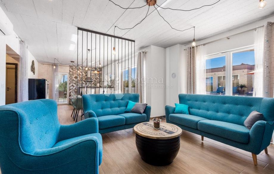 U prizemlju se smjestio udoban dnevni boravak, potpuno opremljena kuhinja i blagovaonica s direktnim izlazom na natkrivenu terasu.