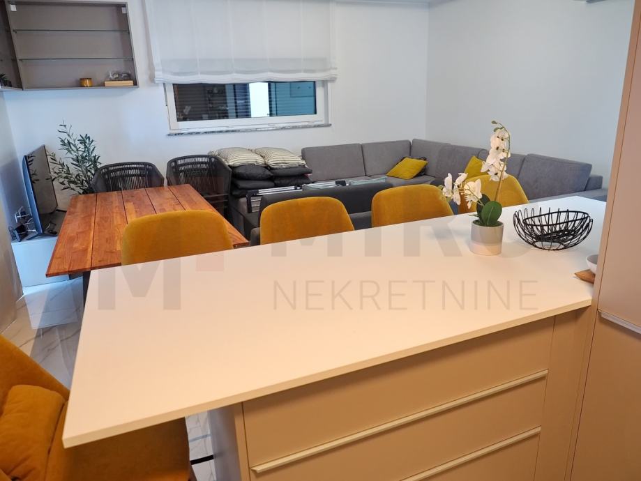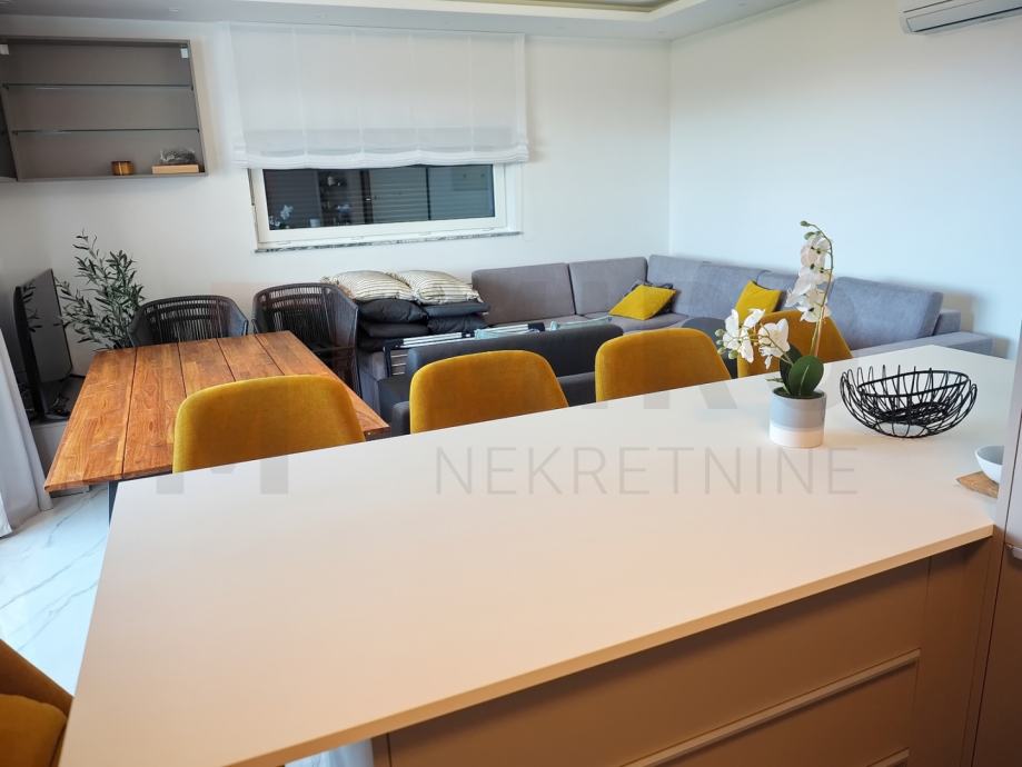 Otok Krk, Malinska, moderno namješten apartman na 2. katu,atraktivna lokacija. Apartman stambene površine 71 m2 sastoji se od ulaznog prostora, 2 spavaće sobe, kupaonice, kuhinje s blagovaonom i prostranog dnevnog boravka s izlazom na natkrivenu terasu površine 18m2. Apartman je u potpunosti namješten te gotovo nekorišten. Karakterizira ga odličan raspored prostorija, moderan interijer, klimatizacija svih prostorija, te panoramski pogled na more. Vlasništvo ovog apartmana obuhvaća okućnicu površine 55 m2 i mogućnost korištenja zajedničkog dijela dvorišta. Na okućnici predmetne nekretnine nalazi se jedno parkirno mjesto. Nekretnina je u vlasništvu fizičke osobe i kupac podliježe obvezi plaćanja poreza na promet nekretnine u visini 3%. Prodavatelj nekretnine garantira urednu vlasničku dokumentaciju. Posjetite nas i pronađite kvadrat vašeg doma!