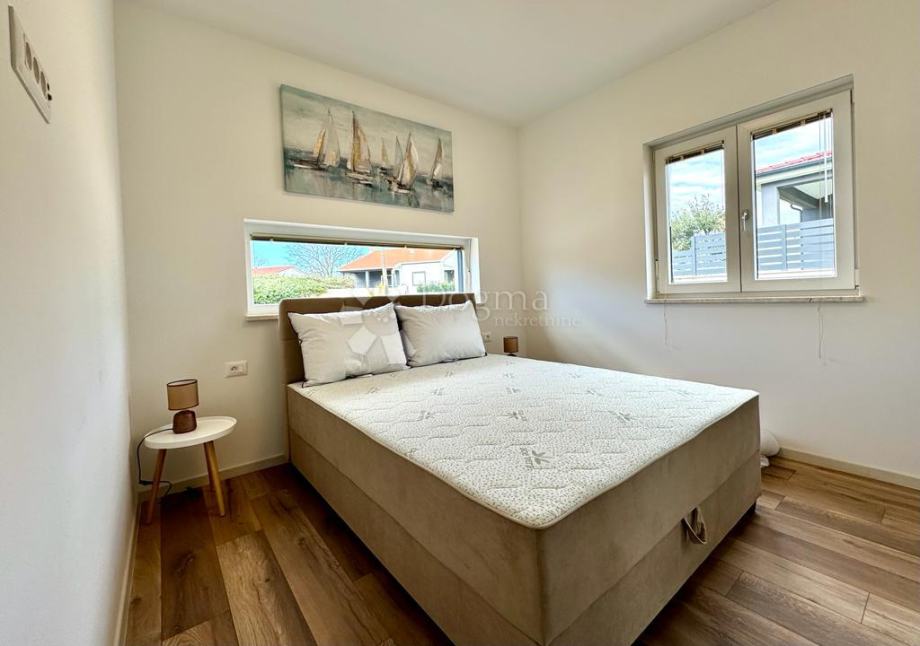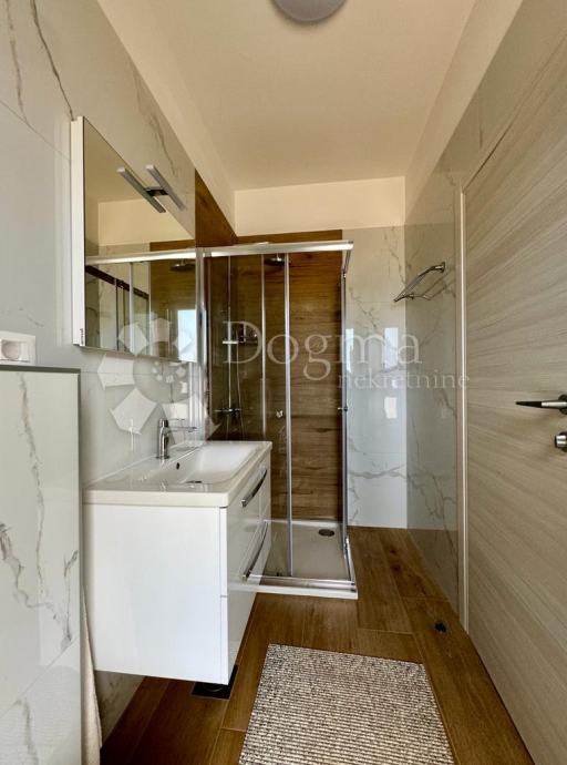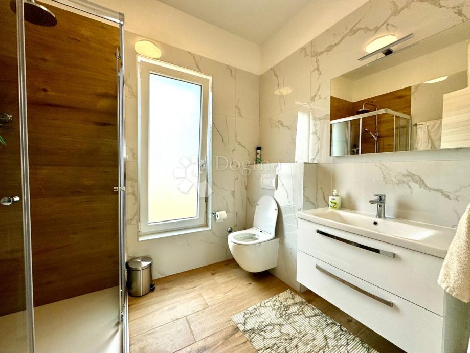 U unutarnjem prostoru očekuje vas prostrana dnevna soba s roletama na struju, klimom Mitsubishi i podnim grijanjem u kupaonici.