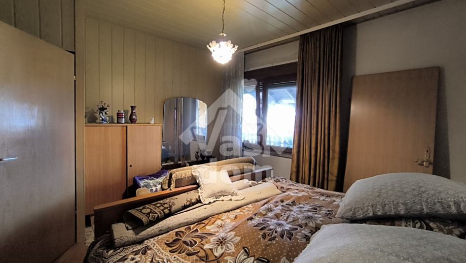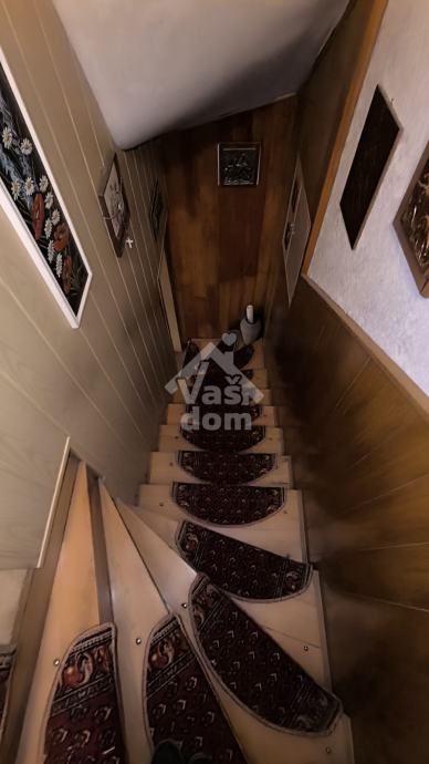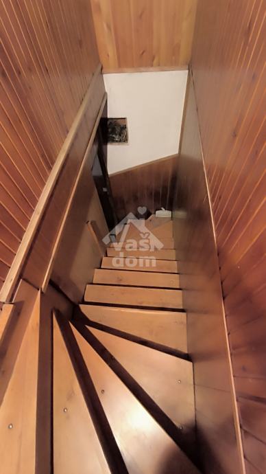 Kuća se sastoji od prizemlja gdje je jedna spavaća soba cca 10 m2., malog toaleta, povezane kuhinje i blagovaonice te zasebnog dnevnog boravka sa izlazom na terasu cca 20 m2 i vrt. Na katu se nalaze dvije veće sobe i jedne manje iz koje se izlazi na veliku terasu, veće kupaonice te stubišta za potkrovlje gdje se još nalazi cca 40 m2 korisnog prostora.