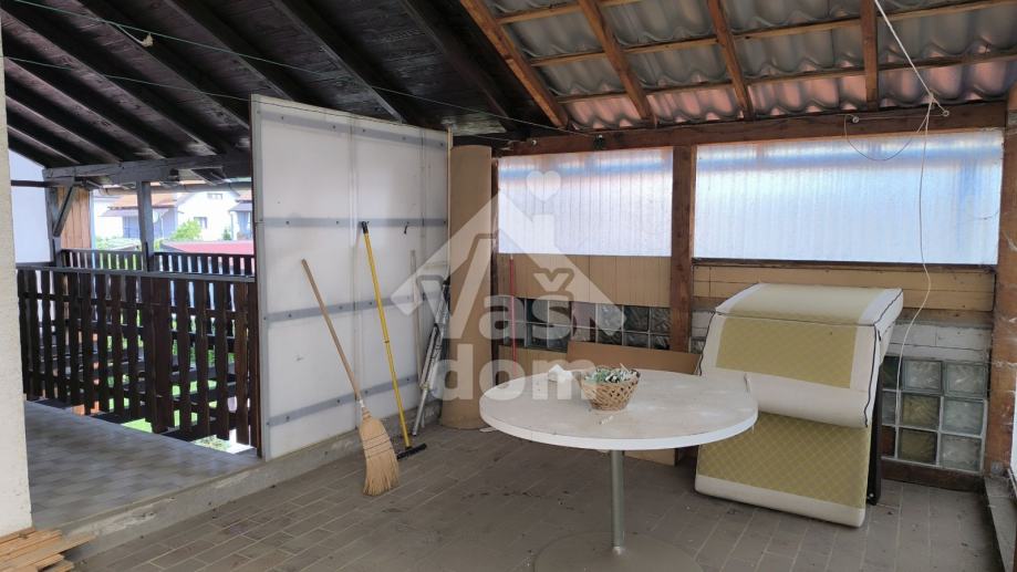 Ispred kuće se nalazi dio vrta i kolni ulaz s parkingom , a sa bočne strane se nalazi garaža i u produžetku ostava.