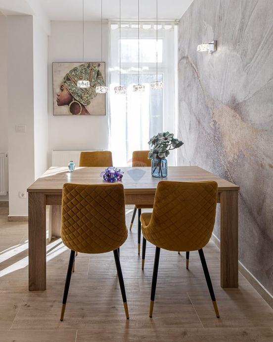 Moderno je namješten i opremljen kvalitetnim kućanskim aparatima i namještajem.