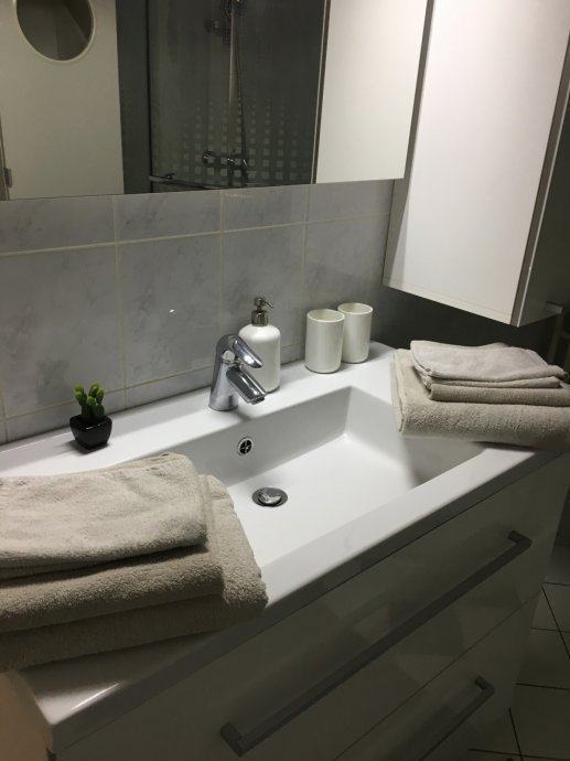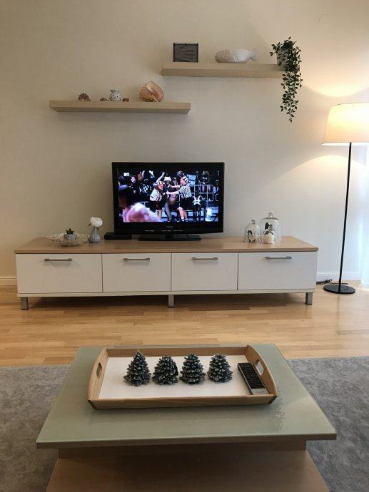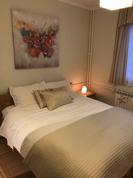 U potpunosti je opremljen svim aparatima (hladnjak, štednjak, pećnica, mikrovalna, perilica/sušilica rublja, perilica posuđa, klima uređaj, TV sa kabelskom televizijom, internet optika).