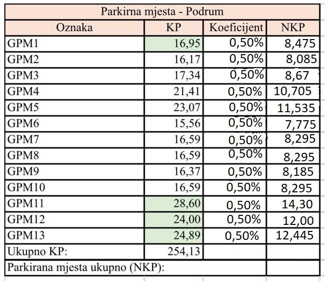 - Uz stan je obavezna kupnja parkirnog mjesta. Može se birati između vanjskih parkirnih mjesta, garaža u prizemlju ili garažnih parkirnih mjesta u podrumu gdje imamo i spremišta.