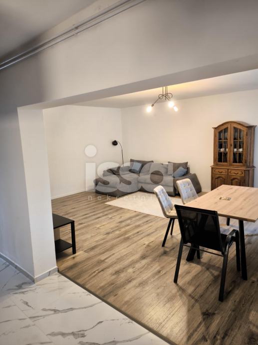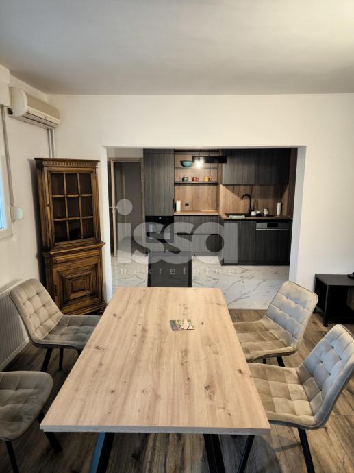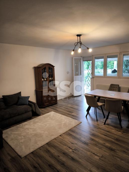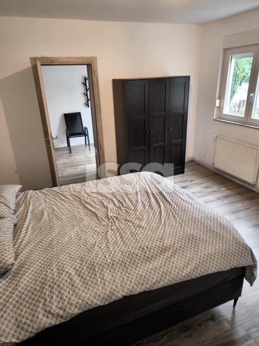 Iznajmljuje se "STAN B", dvosobni stan u prizemlju zgrade (ukupno 5 stanova) ukupne površine 85,90m2, koji se sastoji od hodnika sa 14,52m2, kupaone sa 4,21m2. kuhinje sa 11,67m2, izbe sa 3,20m2, sobe sa 32,06m2 i sobe sa 21m2. Grijanje plinsko etažno. Struja i plin se plaćaju po potrošnji, voda se dijeli na broj članova. Stan je kompletno uređen sa svim potrebnim kućanskim aparatima, klima. Parking u ulici bez naplate.Privatan ulaz sa dvorištem ispred, zajedničko dvorište na korištenje iza kuće. Najam na duži period uz solemnizirani ugovor o najmu.