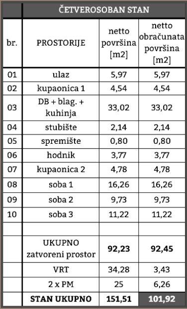 Proteže se na prizemlje i 1. kat, ukupne neto obračunate površine 101,92 m².