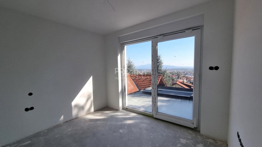 Stan se sastoji od dvije etaže, na prvoj etaži visine prvog kata nalazi se ulazni hodnik, blagovaonica povezana s dnevnim boravkom, kuhinja, balkon te dvije spavaće sobe i kupaonica. Druga etaža visine drugog kata sastoji se od stubišta, hodnika, kupaonice, te još tri sobe od kojih se jedna može pretvoriti u drugi dnevni boravak ili radni prostor, te prostrane terase od 30m2 s koje se pruža nezaboravan pogled na Grad Samobor.