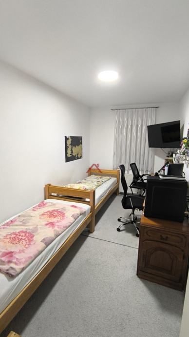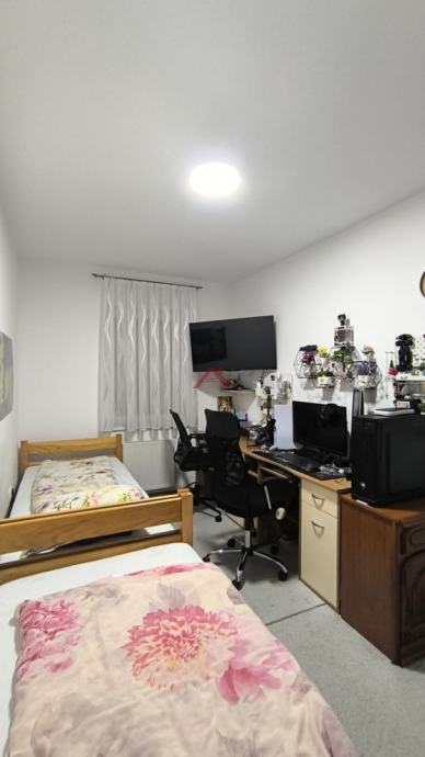 PRILIKA, trosobni stan u prizemlju sa pripadajućim dvorištem. Kvalitetna zgrada. sa liftom iz 2009. godine Stan se sastoji od prostranog dnevnog boravka sa kuhinjom i blagovaonom, dvije spavaće sobe, kupaonice sa WC-om, gostinjskog WC-a, ostave, ulaznog prostora te malog dvorišta. Stanu pripada jedno garažno parkirno mjesto i spremište u podrumu zgrade. Stan se nalazi u blizini osnovne škole, dječjeg vrtića, igrališta, dućana, javnog prijevoza i svih potrebnih sadržaja za lagodan život. Orijentacija: istok-jug. Grijanje: etažno plinsko. Info na mob. 091 361 5081
