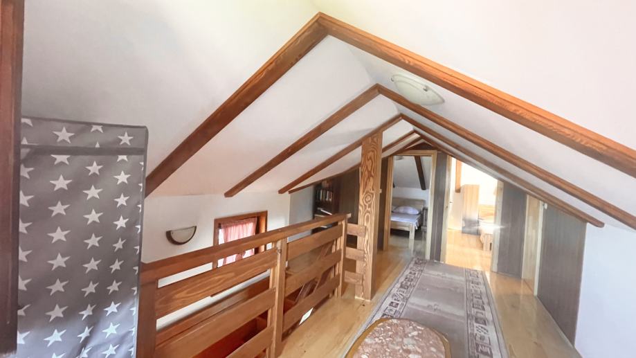 U potkrovlju se nalaze dvije spavaće sobe s wc-om , mogučnost još jedne sobe.