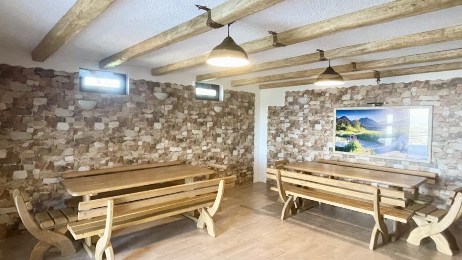 Odlično organiziran prostor i vanjski sadržaj. Uz kuću se nalazi natkriveni roštilj koji ima prostor za sjedenje te mini kuhinjicu. Predviđeno parkiranje 10 parkirnih mjesta. Ograda na daljnski, klimatizirano, video nadzor, voda cisterna (12suća litara), postoji bunar u dvorištu (3 tisuće litara), septička jama. Za punjenje bazena dovoze vodu vatrogasci ( 30 tisuća litara). Voda je sva provedena po kući tako da normalno sve funkcionira kao da je i gradska voda. (2027. godine bi trebao doći gradski vodovod).