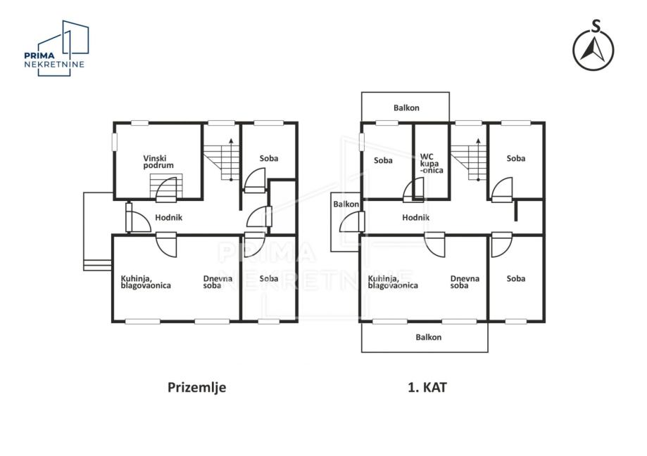 Sastoji se od prizemlja, kata i tavana, uz mogućnost adaptacije tavanskog prostora u dodatni stan. U prizemlju se nalaze kuhinja s blagovaonicom, dnevni boravak, kupaonica, dvije spavaće sobe, predsoblje i vinski podrum. Na katu se nalaze predsoblje, kupaonica i četiri sobe, od kojih je jedna uređena kao dnevni boravak s kuhinjom, što omogućuje da se kat koristi kao zaseban stan.