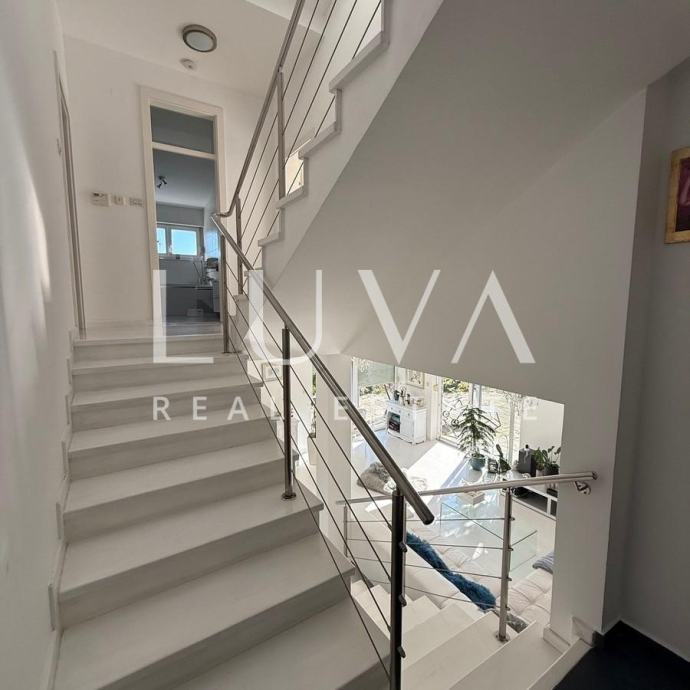 Na polukatu imamo jednu spavaću sobu i kupaonicu, na prvom katu dvije spavaće sobe, te još jednu kupaonicu i walk in garderobu, a u potkrovlju se nalazi dodatna prostrana soba koja može biti radna, spavaća, fitness soba ili po izboru za neku drugu svrhu.