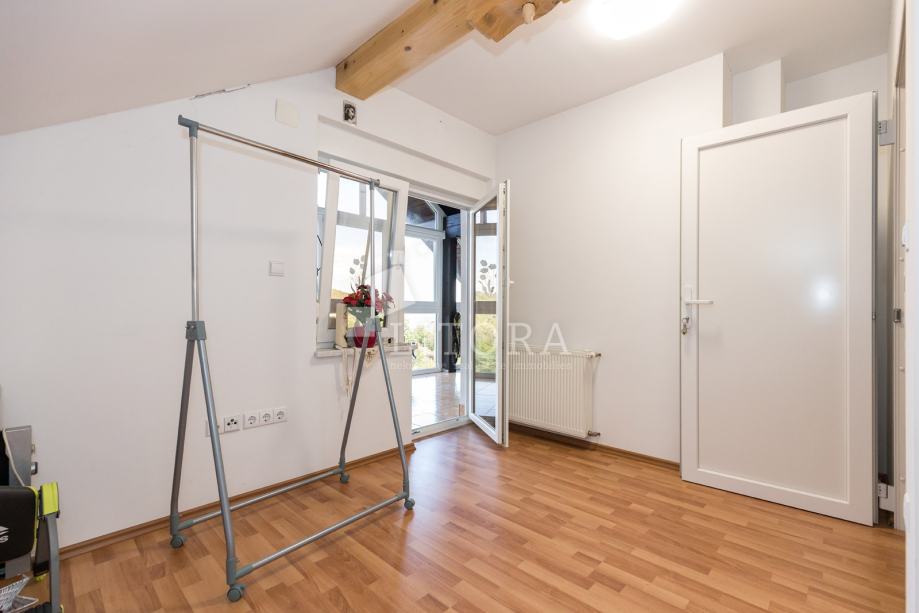 Samobor – Gregurićev Breg, nekretnina se nalazi na mirnom i bregovitom dijelu Samobora, svega 5 km od centra grada. Slobodnostojećoj obiteljskoj kući na dvije etaže: prizemlje i potkrovlje. Kuća ima ukupnu korisnu površinu od 112,64 m². U prizemlju se nalazi prostrano predsoblje, kupaonica, gostinjski WC, prostrani dnevni boravak s kuhinjom te jedna spavaća soba. Unutarnje spiralne stepenice vode u potkrovlje, gdje su smješteni hodnik, kupaonica, WC te dvije spavaće sobe, obje s izlazom na ostakljenu lođu površine 16,33 m².