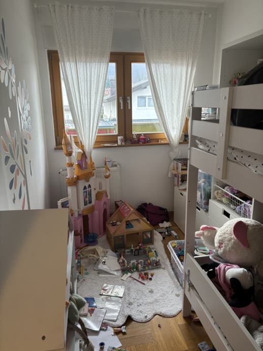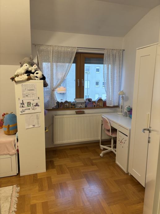 Prva etaža: veća spavaća soba s balkonom, dvije manje sobe (mogućnost spajanja), kupaonica s kadom.