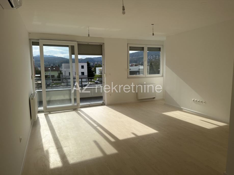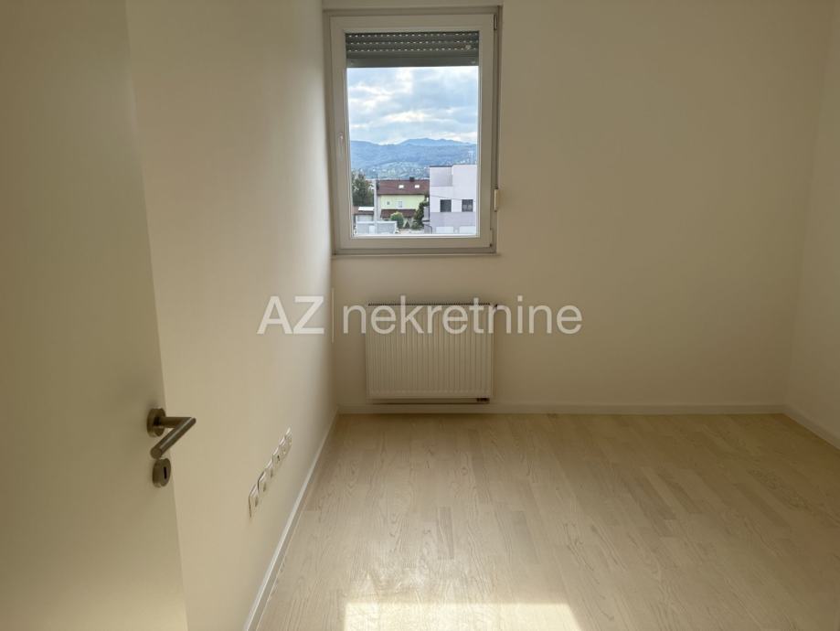 Moguće je jednostavnim zahvatom dobiti i treću sobu. Stanu pripada i garažno parkirno mjesto na -1 etaži do koje se dolazi liftom.
