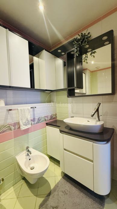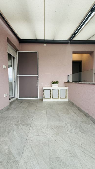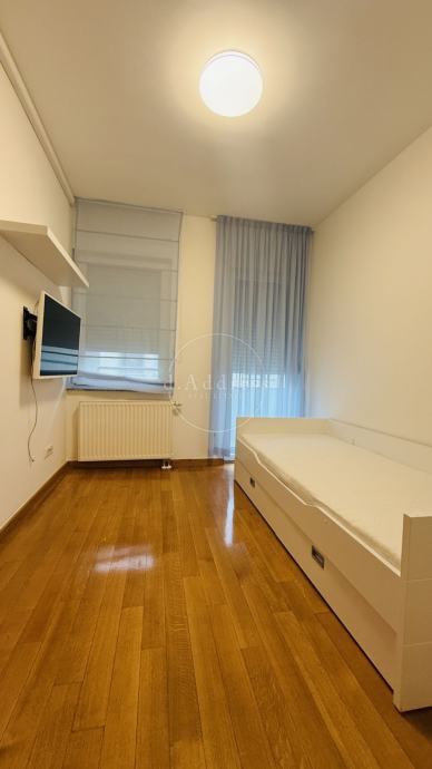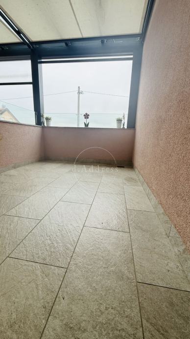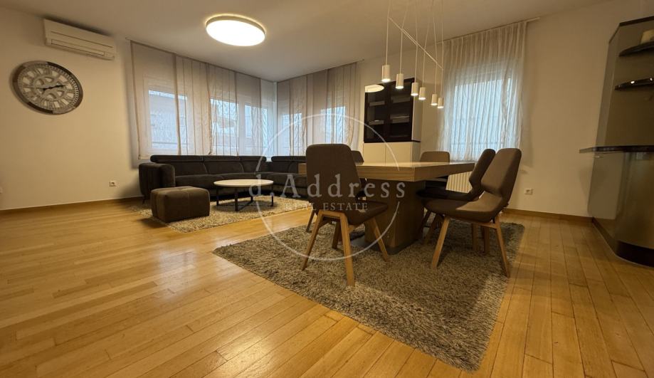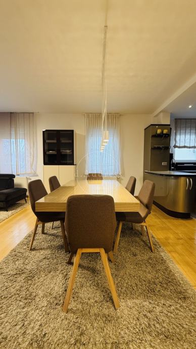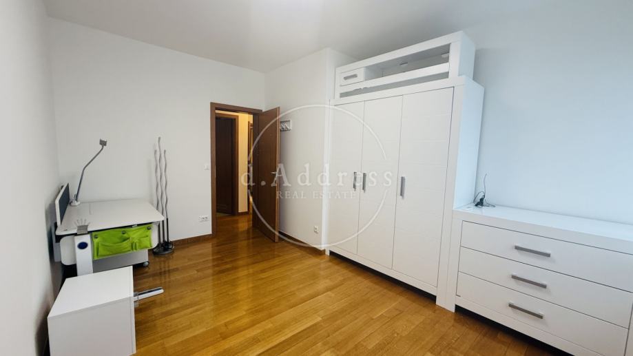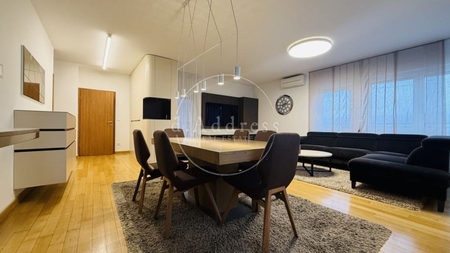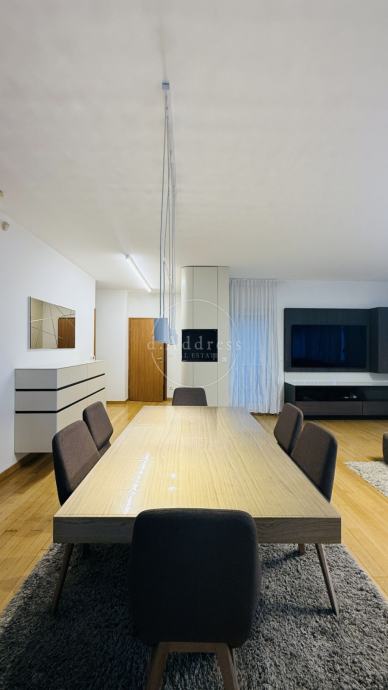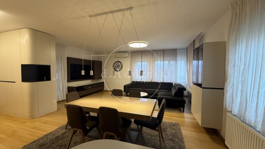 Stan površine 129 m2 sastoji se od ulaza, kuhinje s blagovaonicom, izbe te prostranog dnevnog boravka sa izlaskom na loggiu, 3 sobe, 2 kupaonice te balkona.