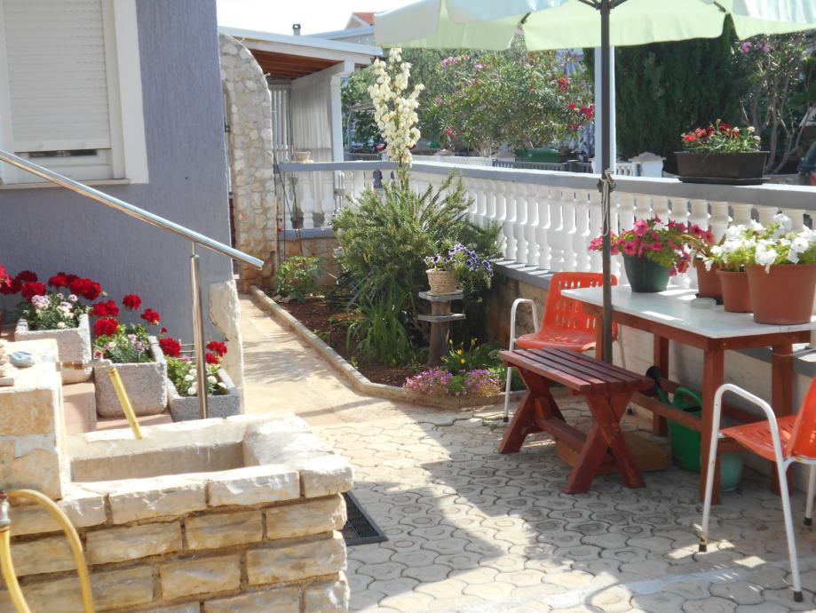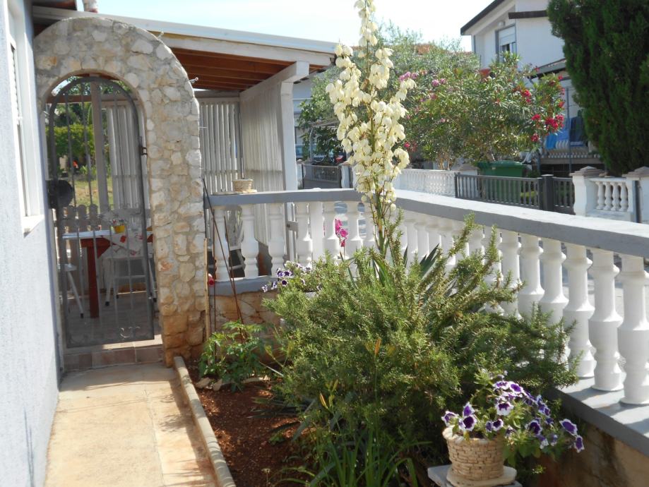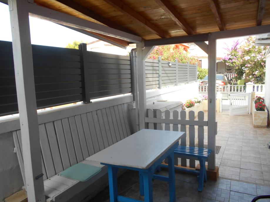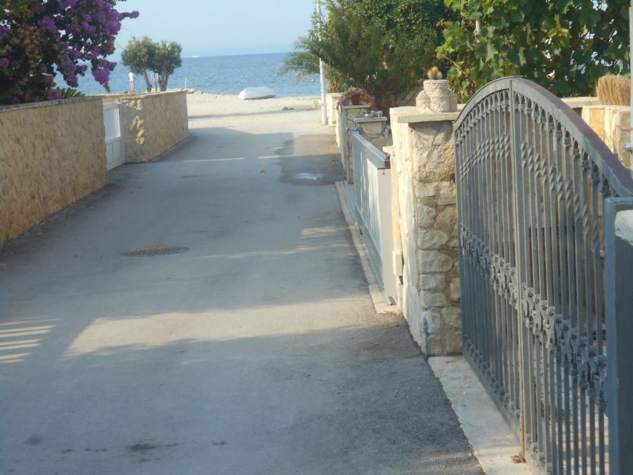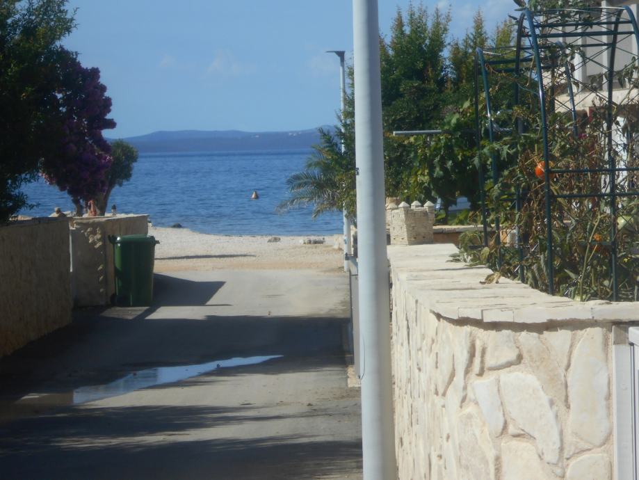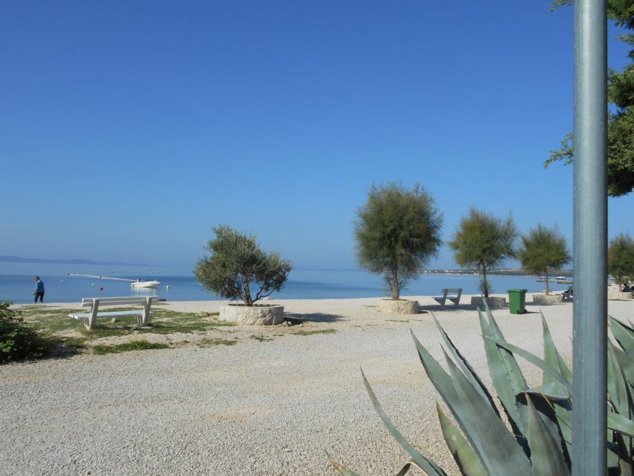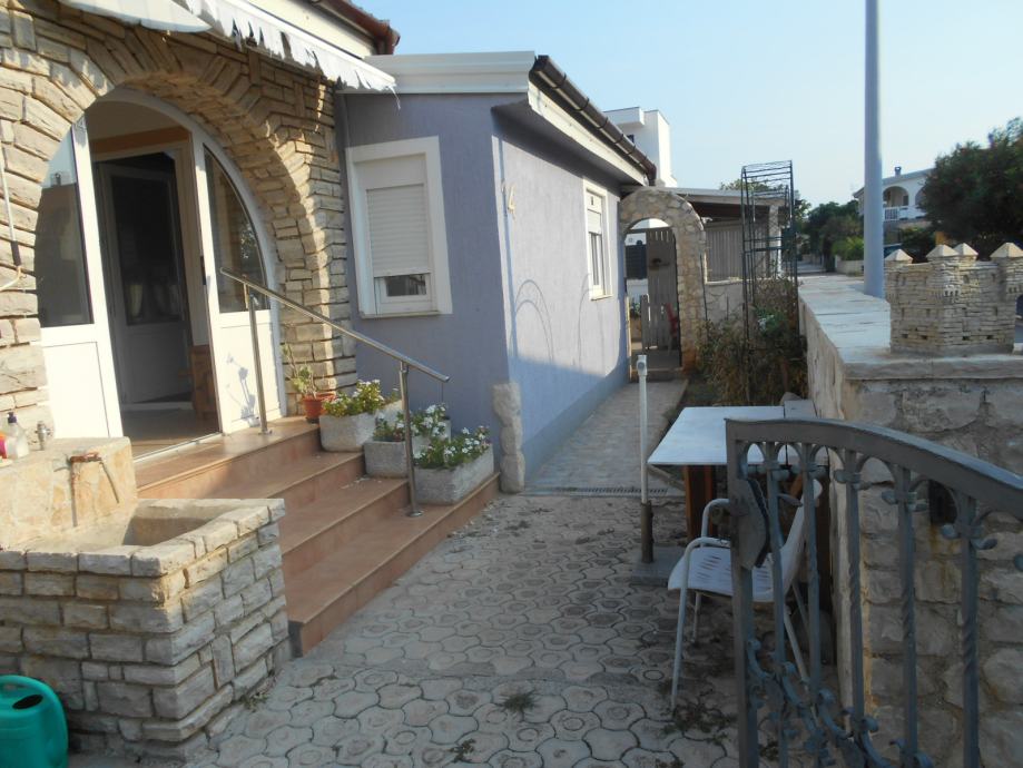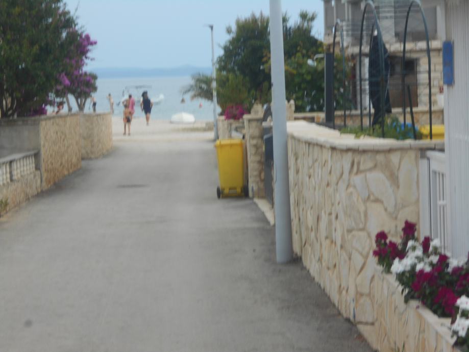 prema moru samo 45 met. do mora-plaže oko 60 koraka ili 1 min. a u dvorištu je vrtni tuš,ležaljke,gril-roštilj u kamenoj kućici,natkrivena veranda 20 m2, parking za 3 automobila, dućan-KONZUM - restorani I autobusno stajalište 800 met.-centar mjesta 2 km,grad ZADAR 25 KM.AERODROM 45 KM.