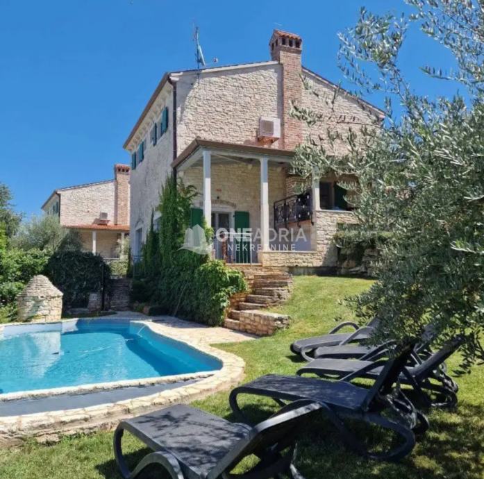 Prekrasna istarska villa površine 200m2 sa okućnicom od 780m2, ima natkriven parking za 2 automobila, 5 soba, kompletno je namještena i uređena!