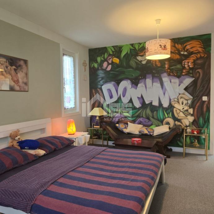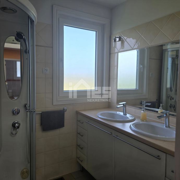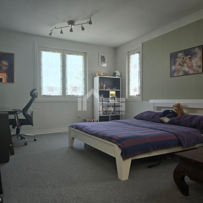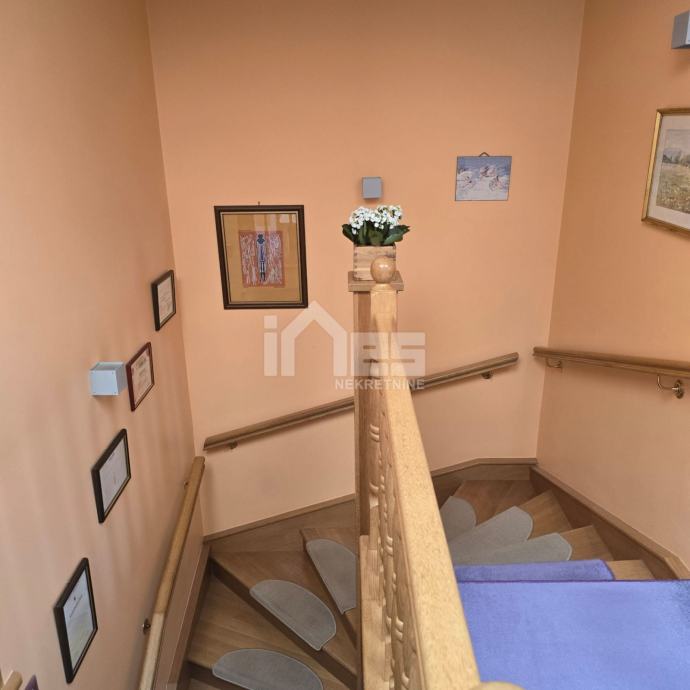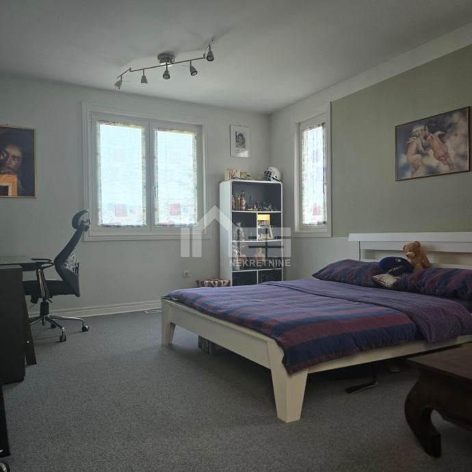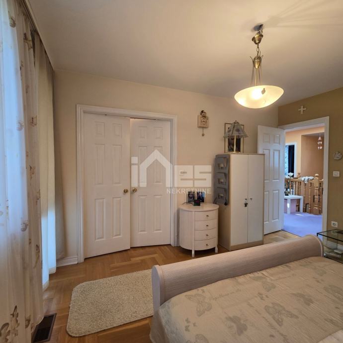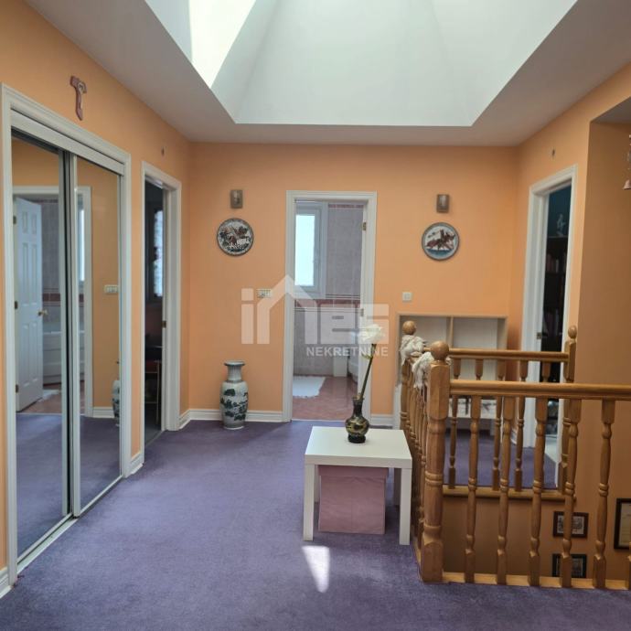 Stambena površina od 240 m² prostire se na dvije etaže i uključuje pet prostranih spavaćih soba, tri kupaonice (od kojih je jedna uređena kao mala Spa-zona s masažnom tuš-kabinom i saunom), prostrani dnevni boravak s blagovaonicom i moderno opremljenom kuhinjom. Svaka prostorija je okupana prirodnim svjetlom zahvaljujući velikim prozorima, a posebna pažnja posvećena je uređenju detalja i stvaranju prostora koji poziva na boravak.