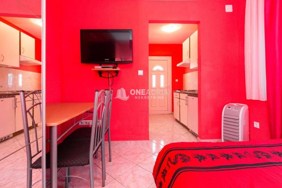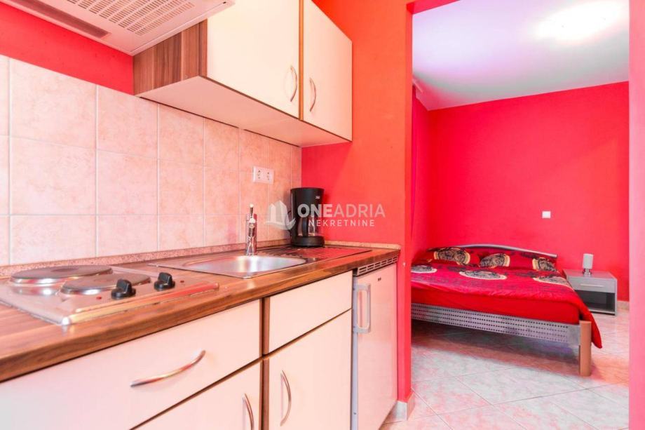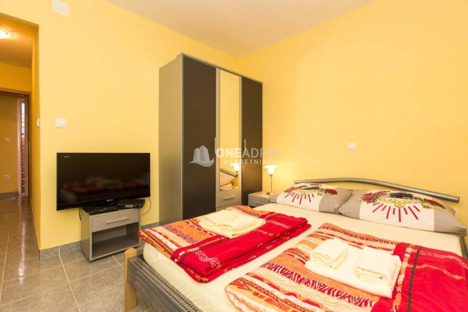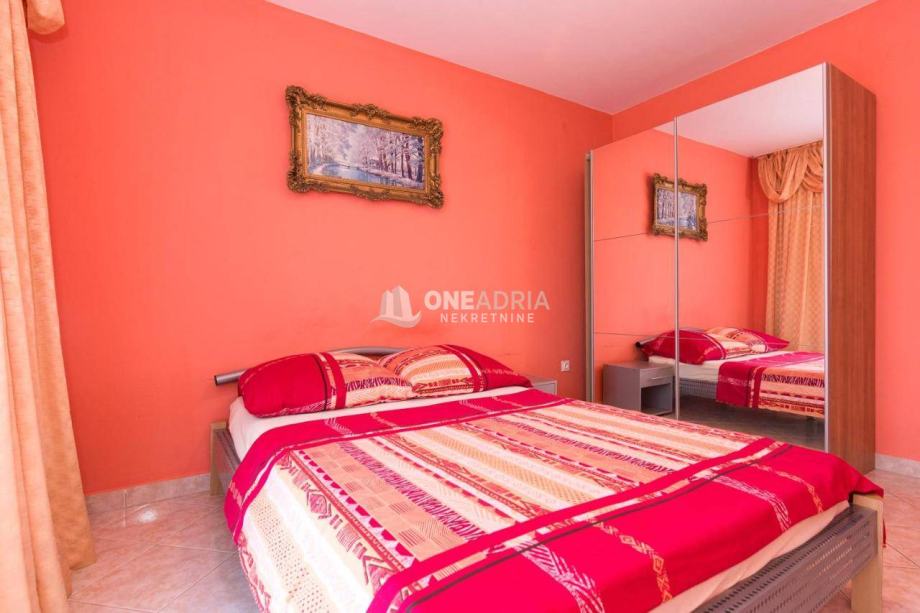 Kuća se sastoji od suterena gdje su smještena dva jednosobna apartmana dok su u prizemlju i na prvom katu dvosobni apartmani!!