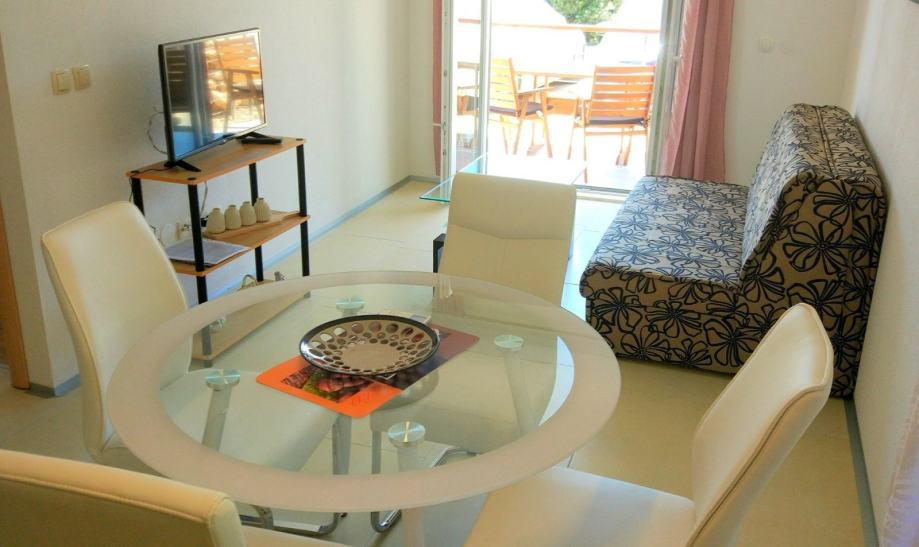 Cijela kuća je kvalitetno građena, održavana i opremljena. Svi apartmani su klimatizirani, kuća ima solarne kolektore koji služe za grijanje vode.