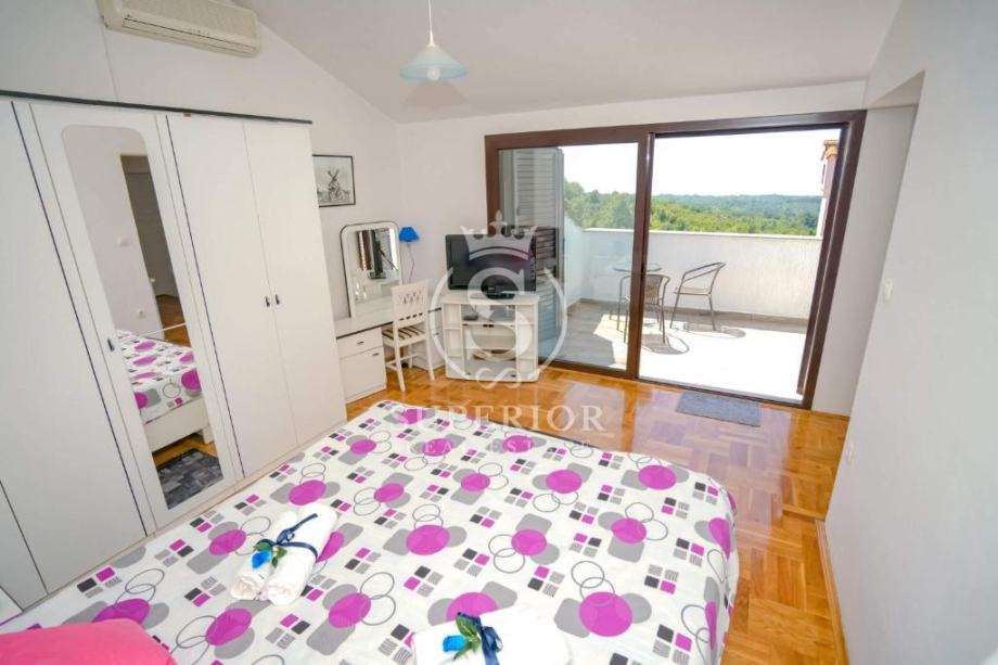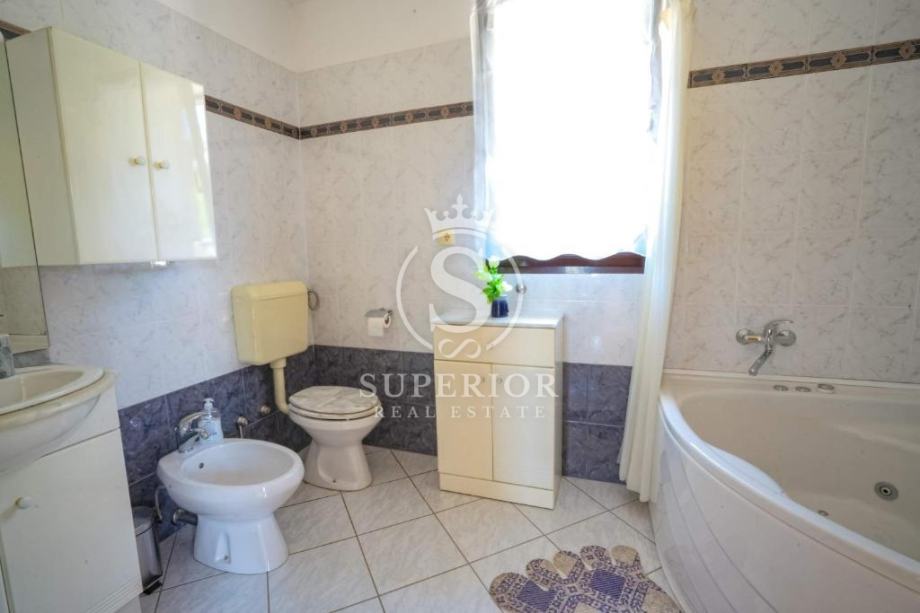 Prizemlje: prostrani dnevni boravak sa šankom, kuhinja, blagovaonica, ostava, spavaća soba i kupaonica