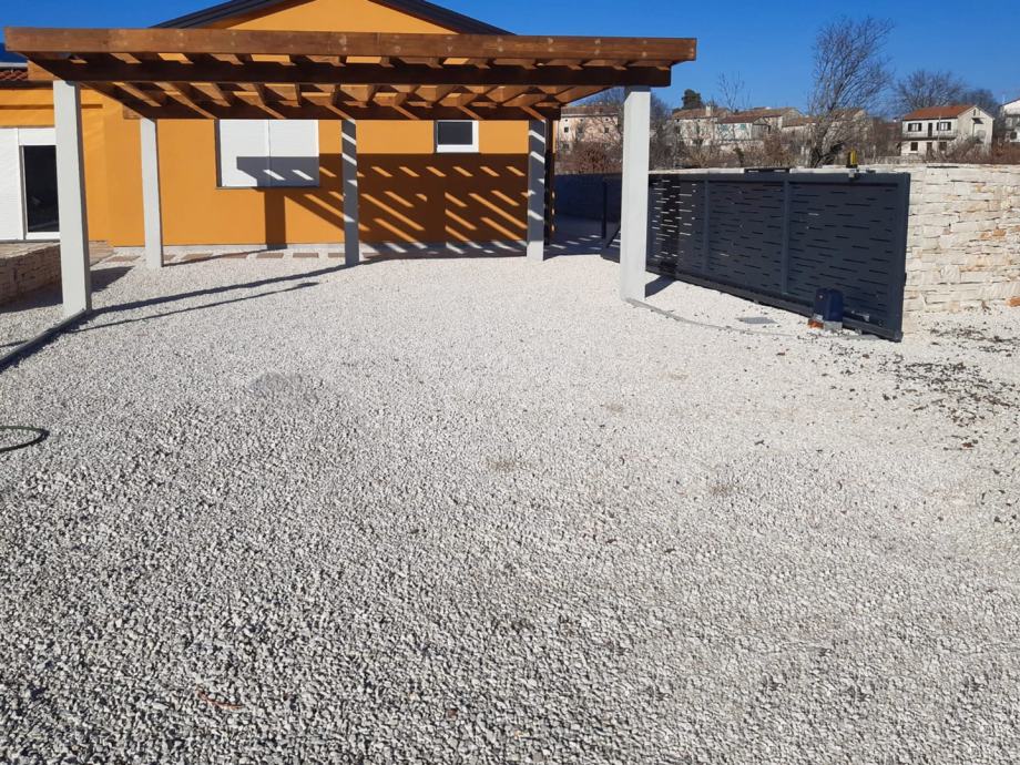 Grijanje je na toplinsku pumpu, ima solarne panele i spremnik od 2000L vode za grijanje, te okućnicu od 1000m2