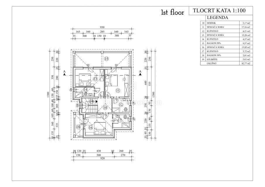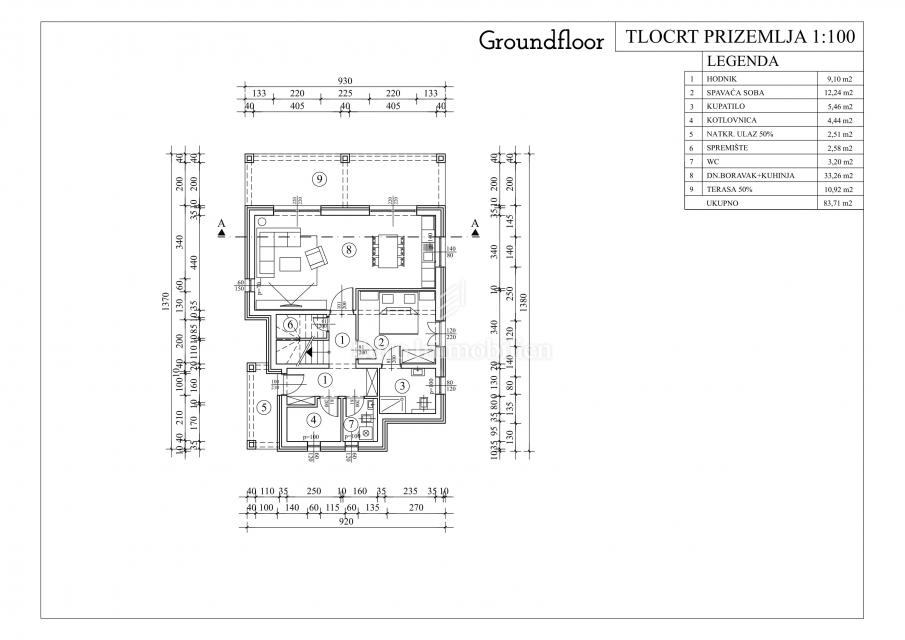 Kuća površine 200 m² sastoji se od prizemlja i 1.kata.