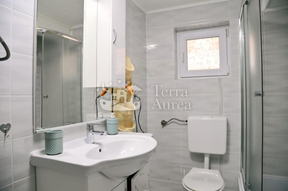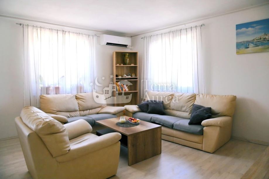 Interijer je osmišljen s naglaskom na udobnost i estetiku – prostorije su pune prirodnog svjetla, a cijela kuća opremljena je PVC stolarijom, klima uređajima te kvalitetnom keramikom i sanitarijama. Prodaje se potpuno namještena.