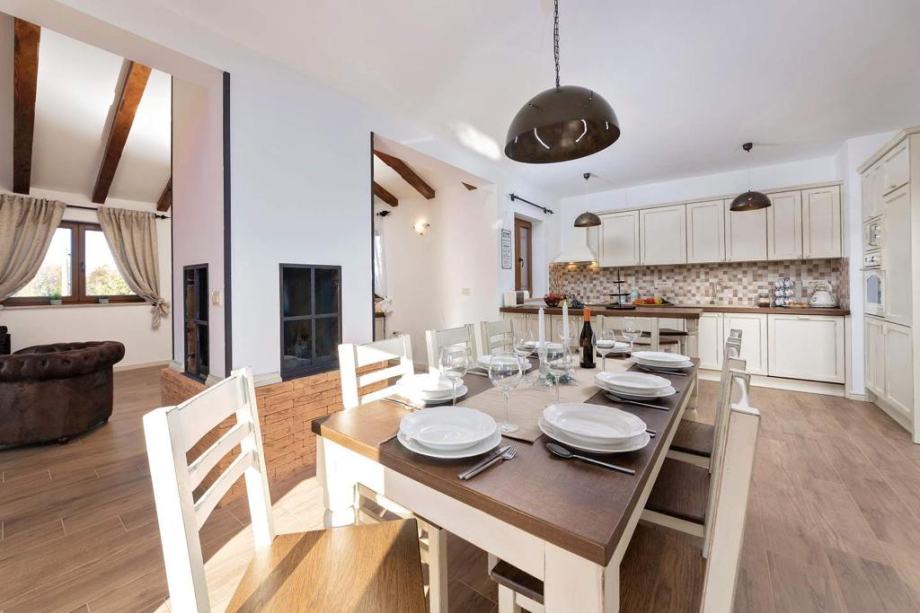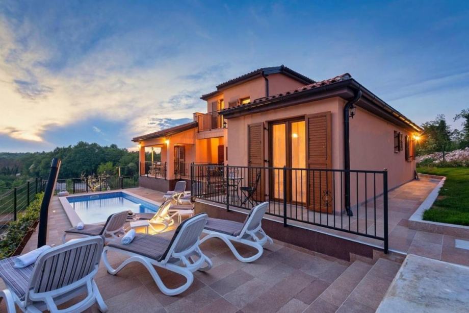 Ova predivna kuća nalazi se u mirnom mjestu u okolici Poreča, udaljenost do mora je 7 km. Susjedstvo je uredno i sastoji se od obiteljskih kuća i kuća za odmor, mjesto je okruženo prirodom.