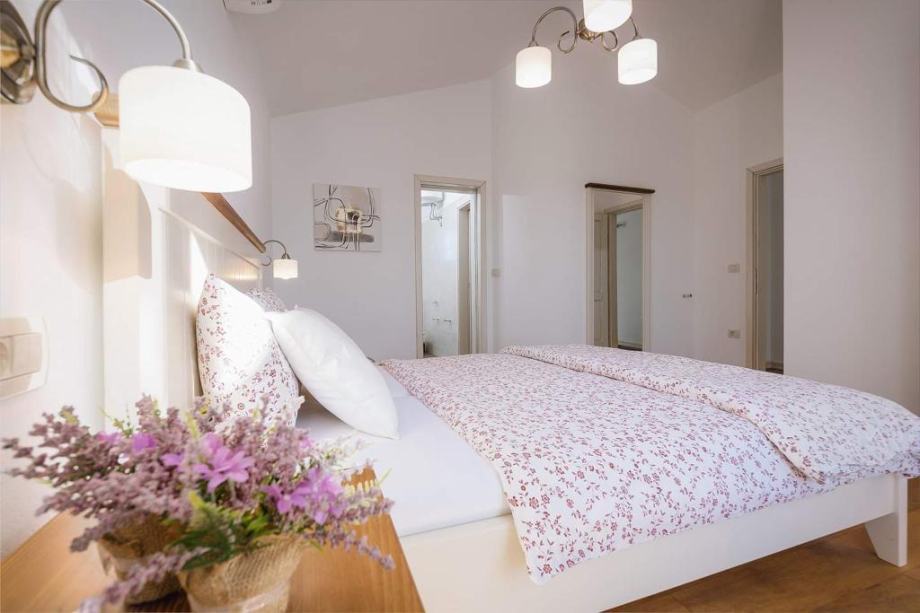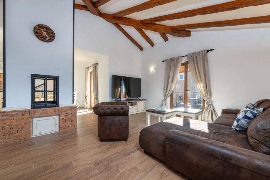 Na katu se nalaze još dvije spavaće sobe i jedna kupaonica. Jednoj sobi pripada i otvoreni balkon.