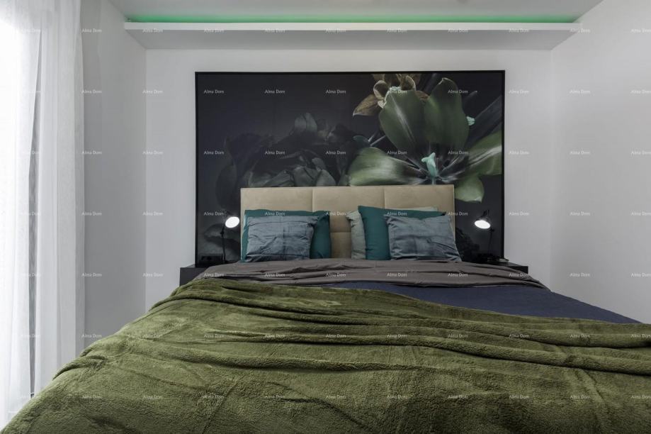 Unutarnje stepenice vode na kat kuće gdje se nalaze dvije spavaće sobe s kupaonicama ( jedna ima prostranu veliku terasu na koju je moguće postaviti jacuzzi ).