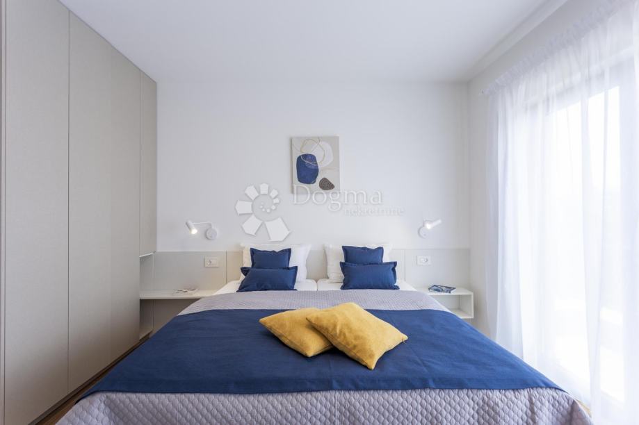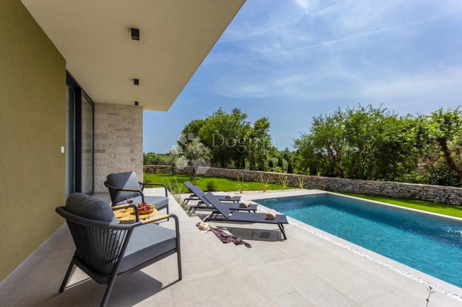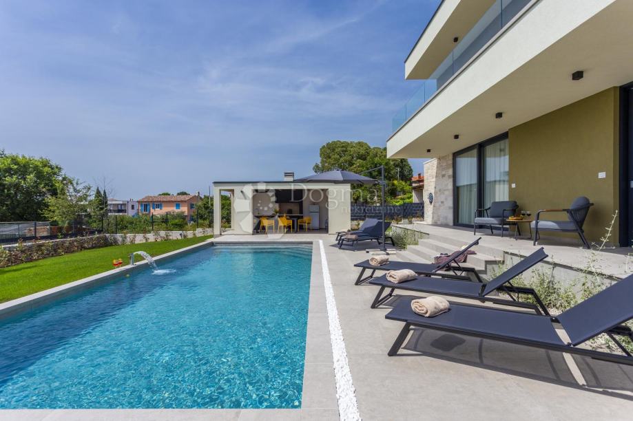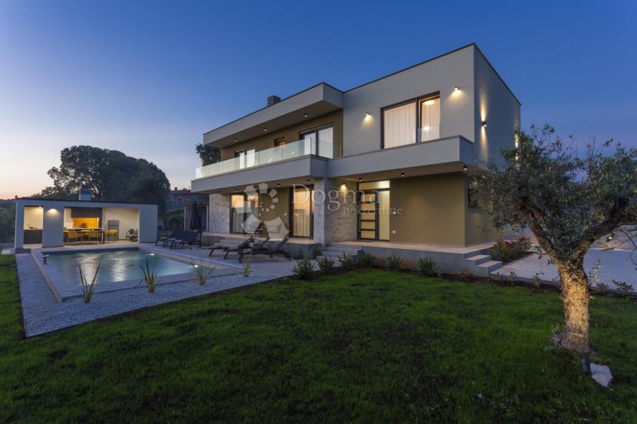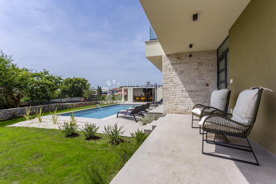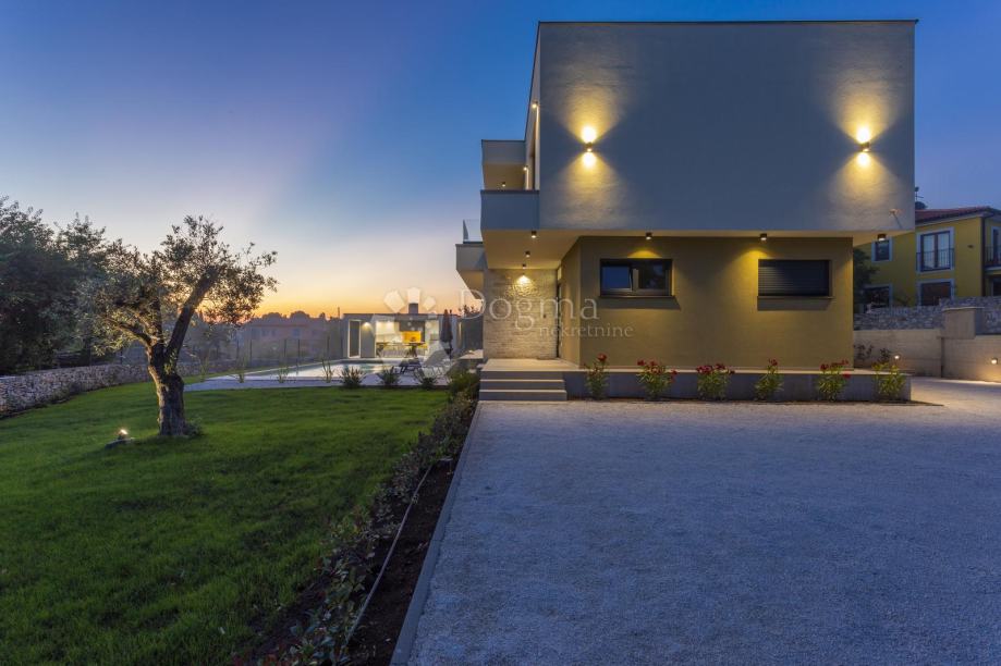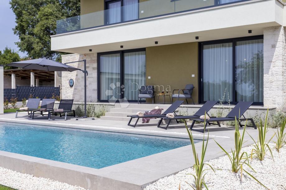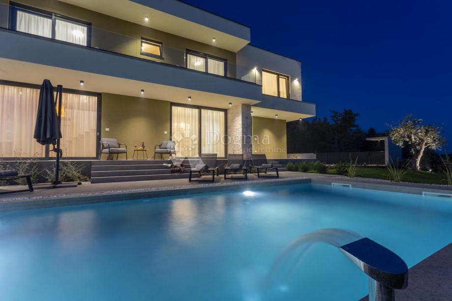 U villi je izvedeno podno grijanje, te grijanje i hlađenje inverterskim klima uređajima, postavljena je PVC stolarija. Villa je luksuzno uređena te je već u funkciju uspješnog turističkog najma. U dvorištu je bazen površine od 40 m2, travnjak sa automatskim navodnjavanjem, parkiralište za dva automobila, ulazna dvorišna vrata sa automatskim otvaranjem, ogradni zid, itd.