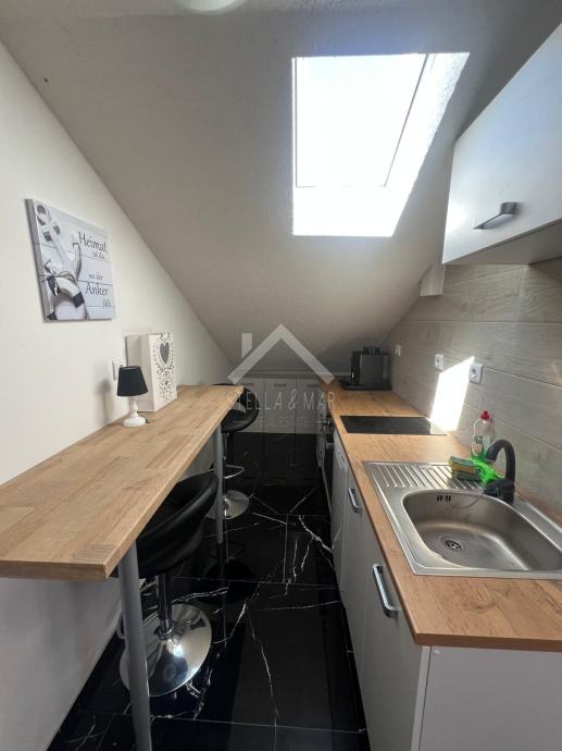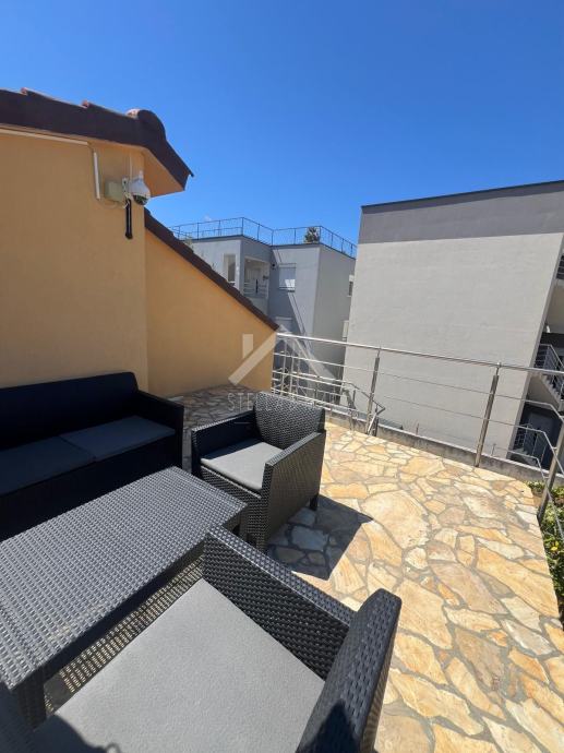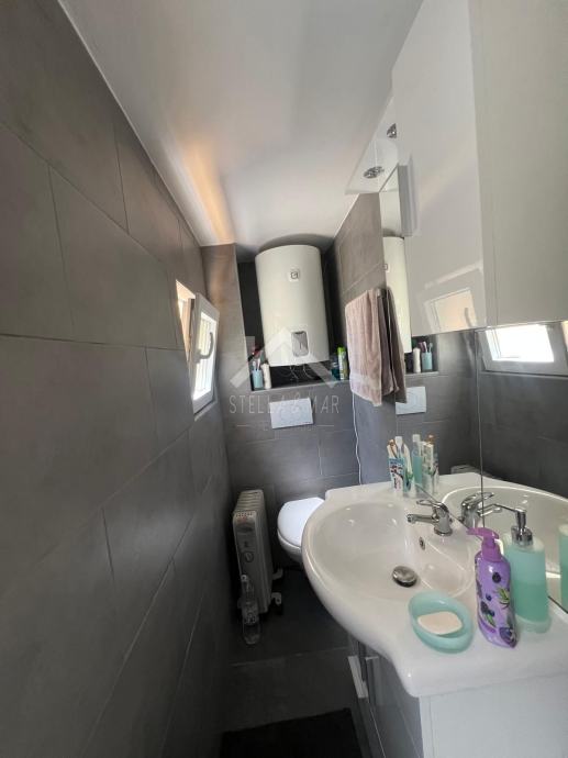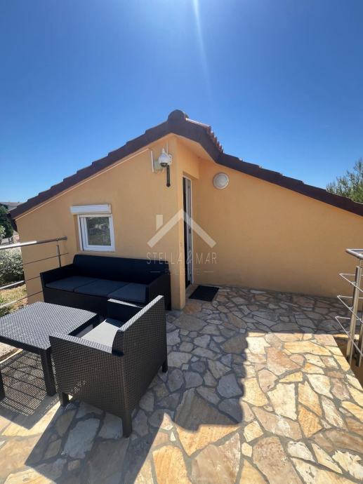 Vanjske stepenice vode na kat kuće gdje se nalazi dodatni dvosobni apartman istog rasporeda. Sa kata se pruža pogled na more.