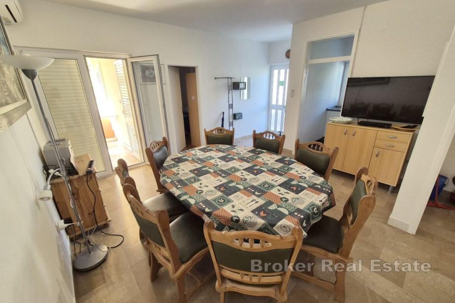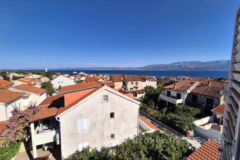 Samostojeća apartmanska kuća u Supetru, na prodaju, smještena na parceli od 637 m2, ukupne stambene površine od 310 m2. Nekretnina se sastoji od suterena, prizemlja i 1. kata.