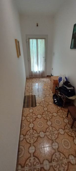 Prodaje se samostojeća kuća s dva odvojena stana, smještena na prostranom zemljištu od 1000 m2 te u koje spada i dio građevinskog zemljišta - lijepim i održavanim maslinikom. Ova nekretnina se nalazi samo 5 minuta vožnje automobilom do mora i predivnih plaža, pružajući idealan spoj privatnosti i blizine obale.