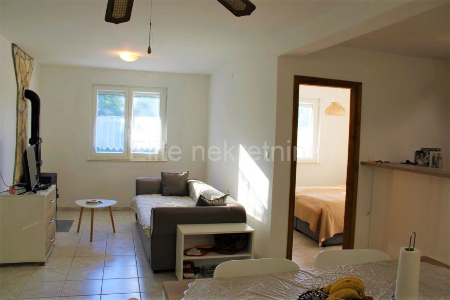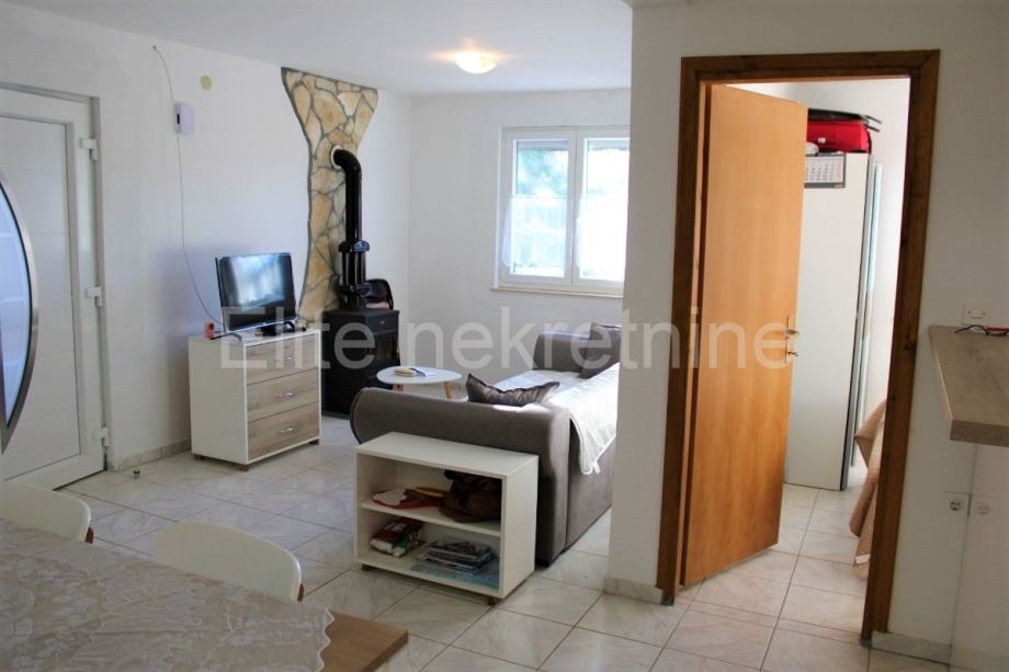 U Kavranu, na 2,5 km od mora nalazi se kuća na prodaju koja nudi mogućnost korištenja kao dva apartmana zasebno s odvojenim ulazom ili kao obiteljska kućaU prizemlju kuće nalazi se apartman koji ima jednu spavaću sobu, kupaonu, i otvoreni prostor s kuhinjom, blagovaonom i dnevni boravkom koji ima peć na drva