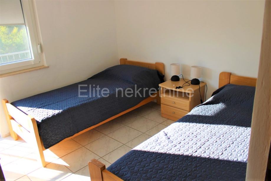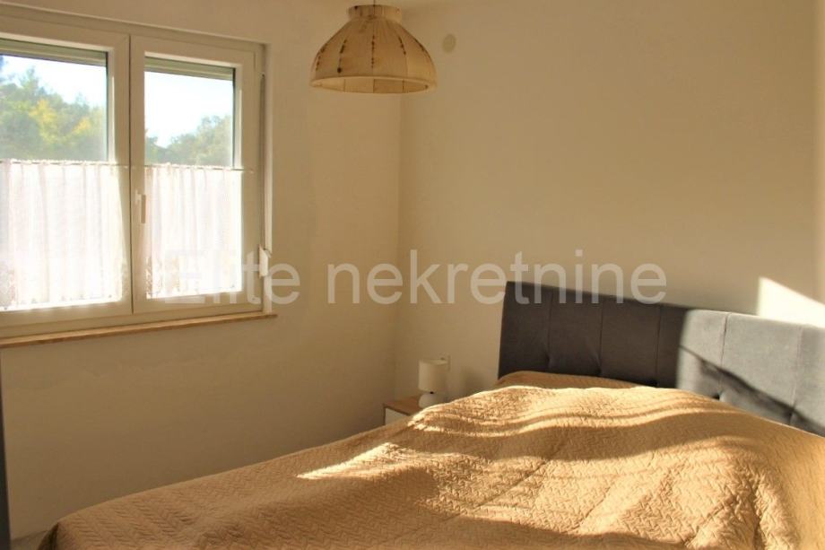Vanjskim stepenicama dolazi se do stana na prvom katu a sastoji se od dvije spavaće sobe koje imaju izlazak na balkon s pogledom prema prirodi, kupaona i otvorenog prostora kao prethodni app.